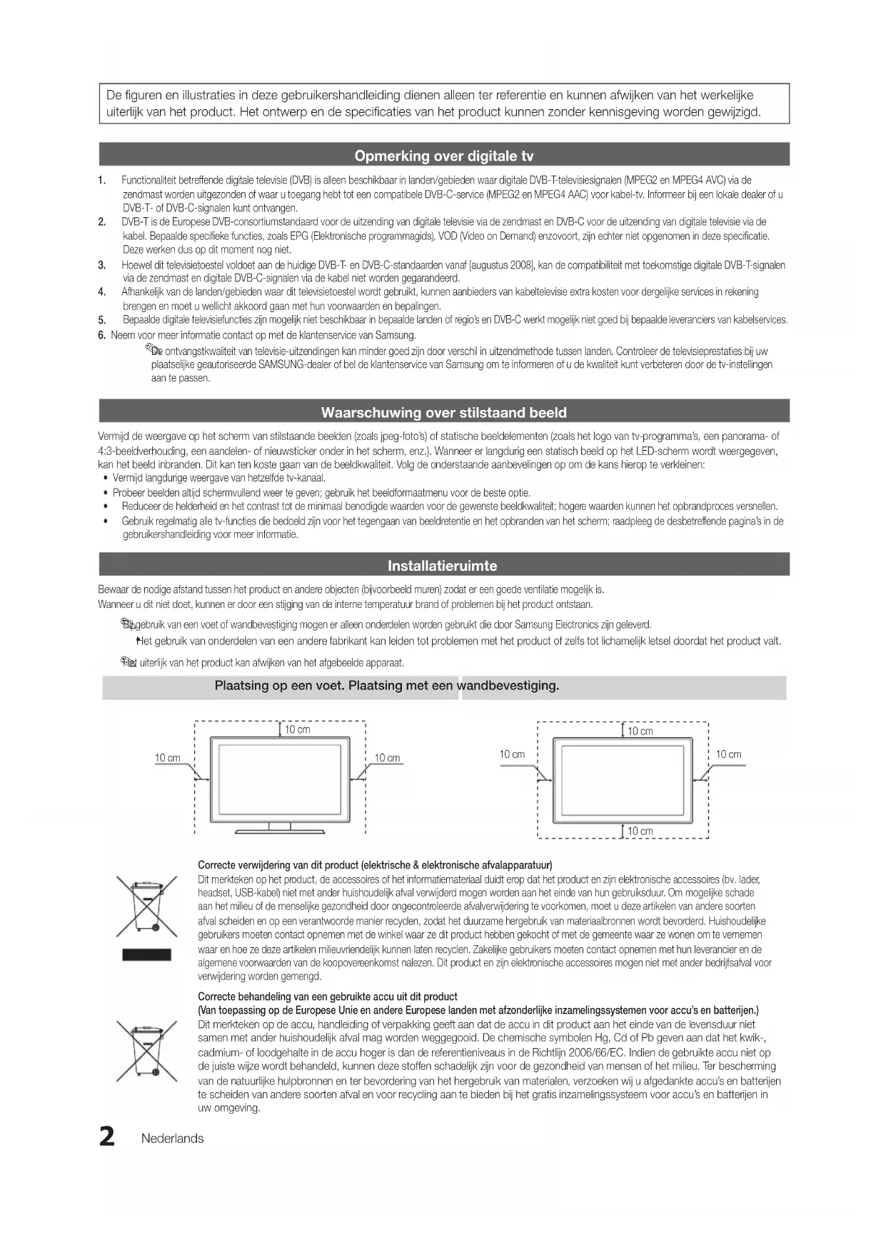 3. Hoewel dit televisietoestel voldoet aan de huidige DVB-T- en DVB-C-standaarden vanaf [augustus 2008], kan de compatibiliteit met toekomstige digitale DVB-T-signalen