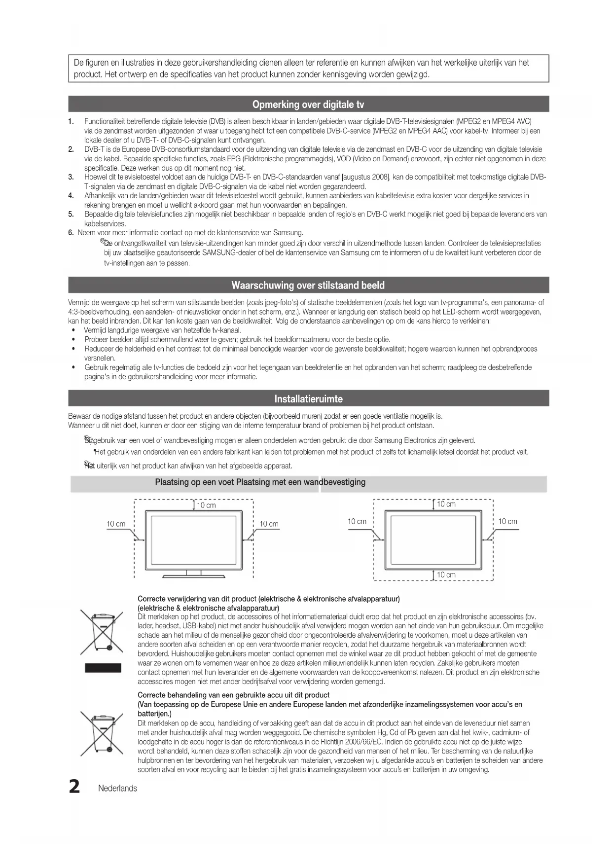 3. Hoewel dit televisietoestel voldoet aan de huidige DVB-T- en DVB-C-standaarden vanaf [augustus 2008], kan de compatibiliteit met toekomstige digitale DVB-