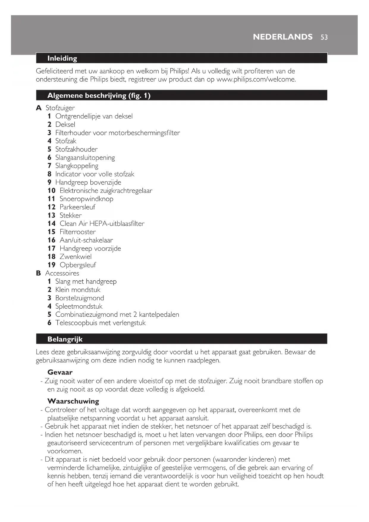 ook niet in uw mond wanneer ze zijn aangesloten op de stofzuiger en deze is ingeschakeld.
