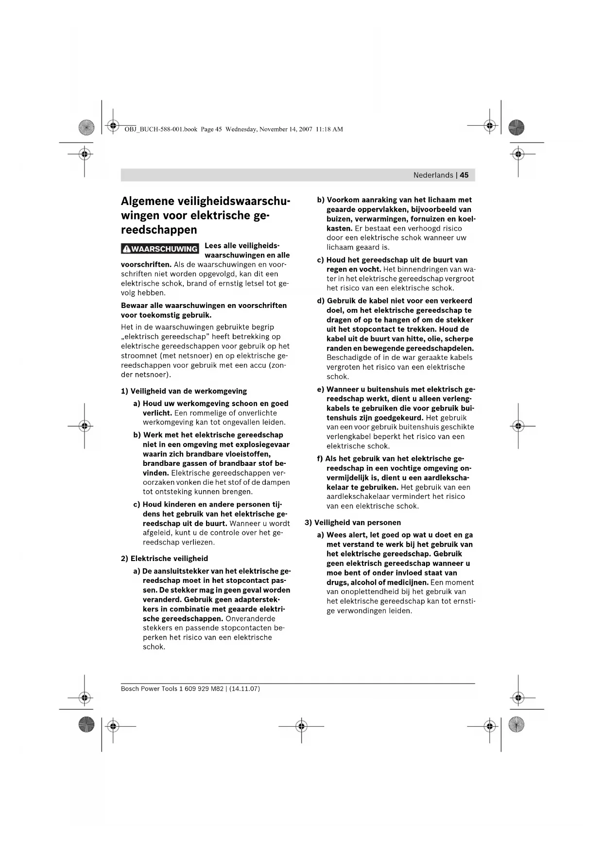 WAARSCHUWING OBJ_BUCH-588-001.book Page 45 Wednesday, November 14, 2007 11:18 AM1 609 929 M82 | (14.11.07) Bosch Power Tools