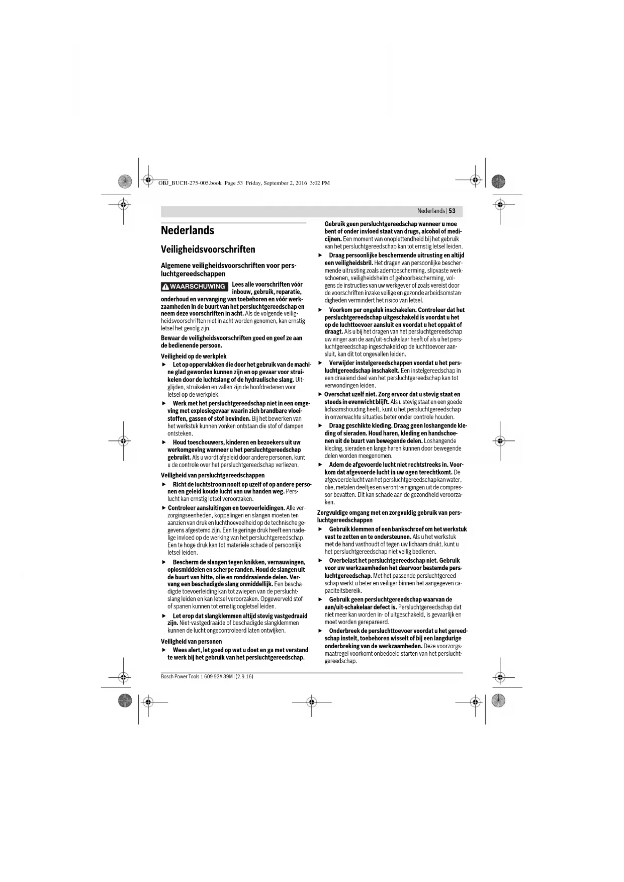 Bij alle Bosch-persluchtgereedschappen die niet behoren tot