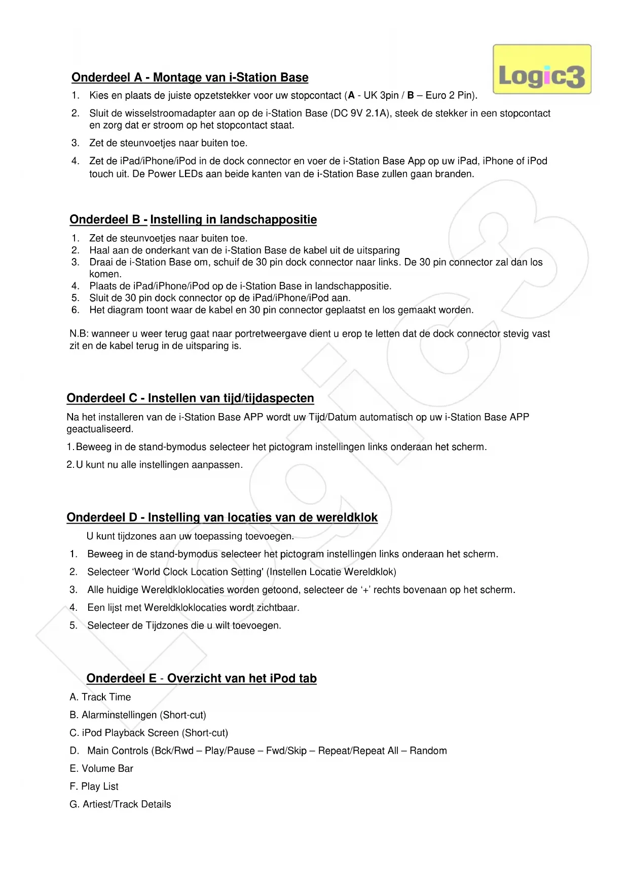 GEBRUIKSAANWIJZING iStation Base Logic3