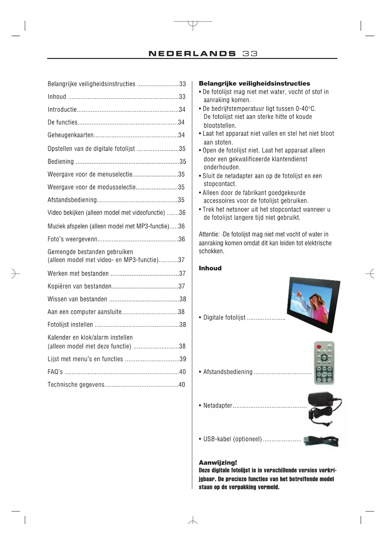 Attentie: ·De fotolijst mag niet met vocht of water in