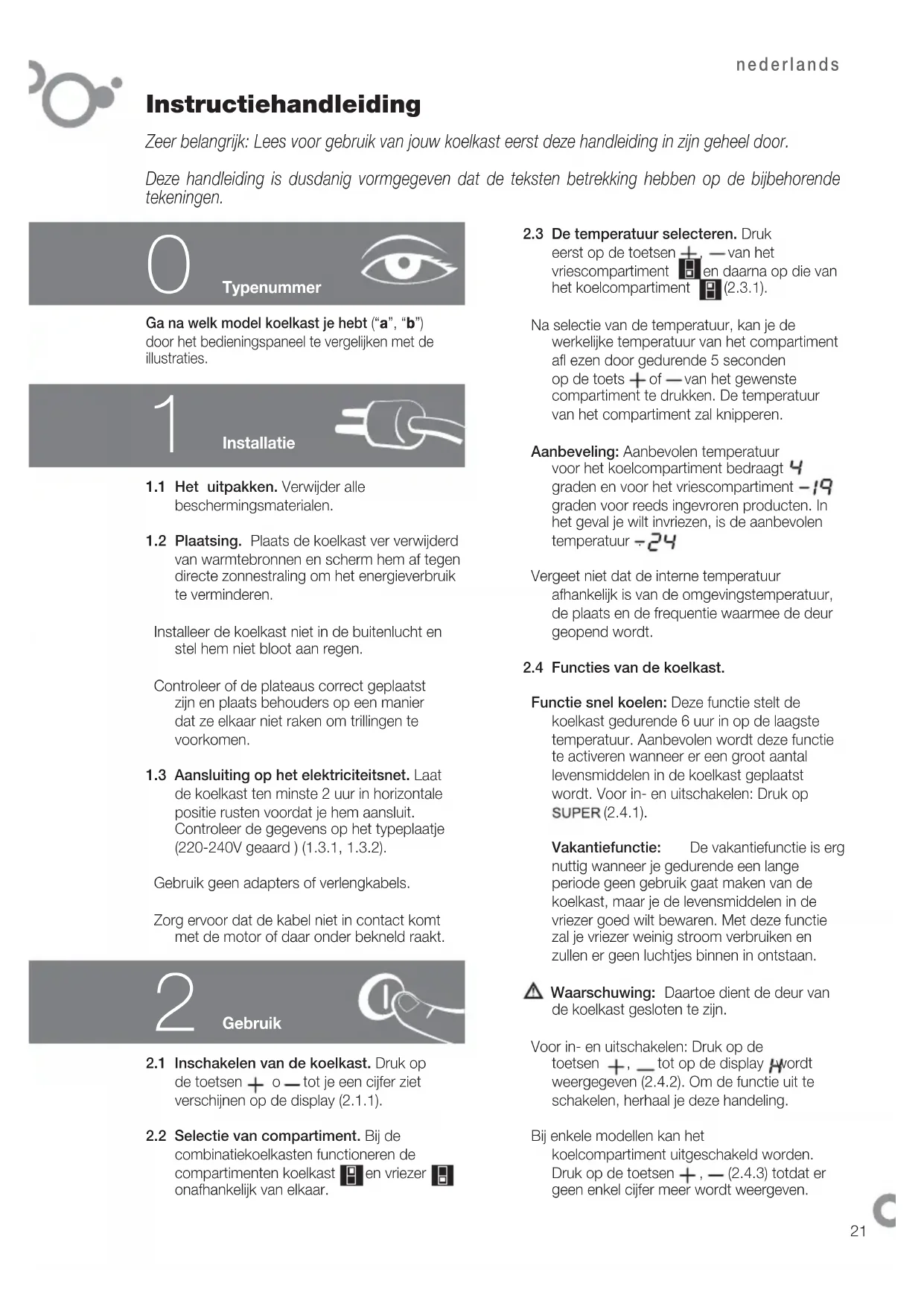 Zeer belangrijk: Lees voor gebruik van jouw koelkast eerst deze handleiding in zijn geheel door.