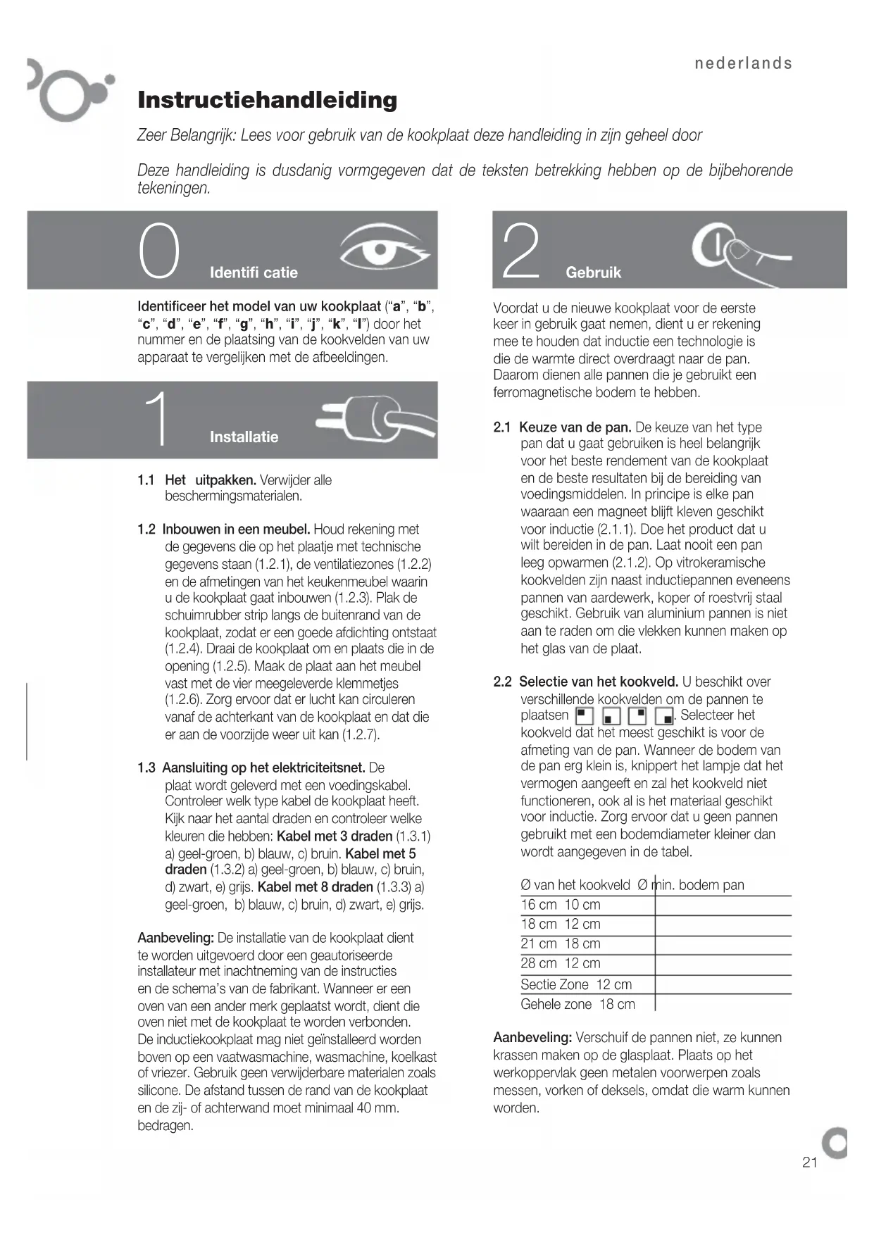 voor inductie (2.1.1). Doe het product dat u