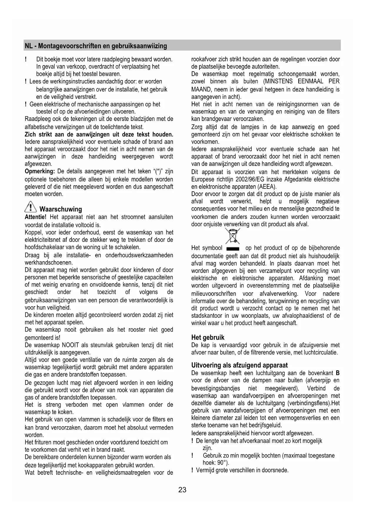NL - Montagevoorschriften en gebruiksaanwiizing