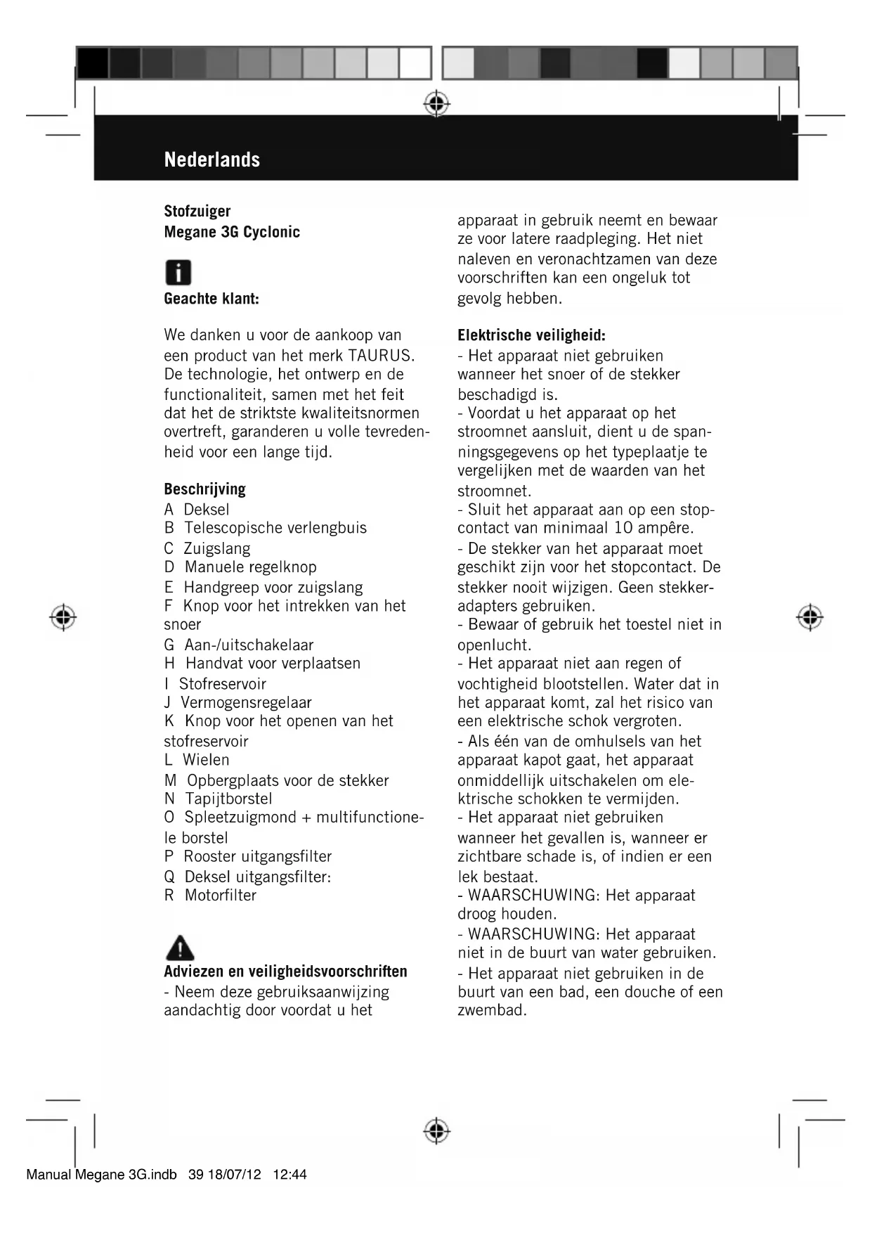 GEBRUIKSAANWIJZING Megane 3G Cyclonic TAURUS