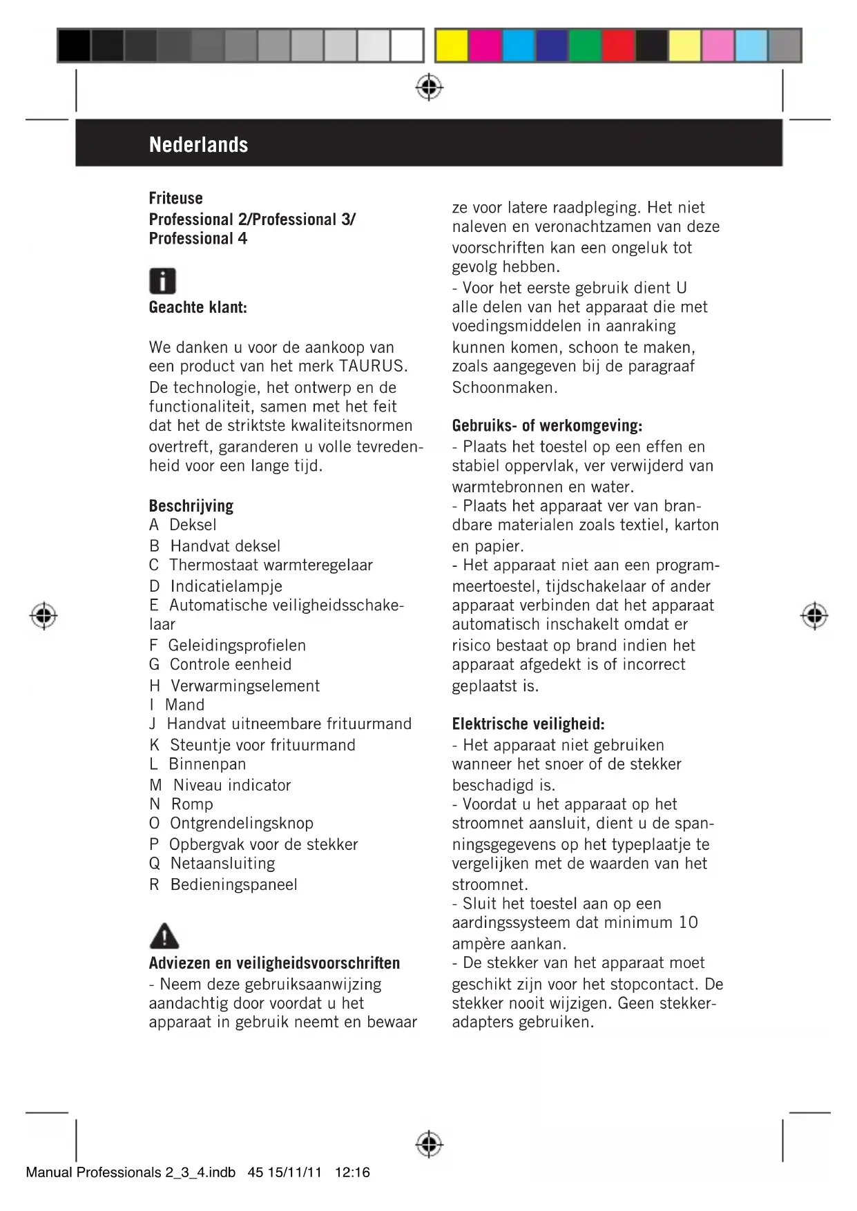 GEBRUIKSAANWIJZING Professional 3L TAURUS