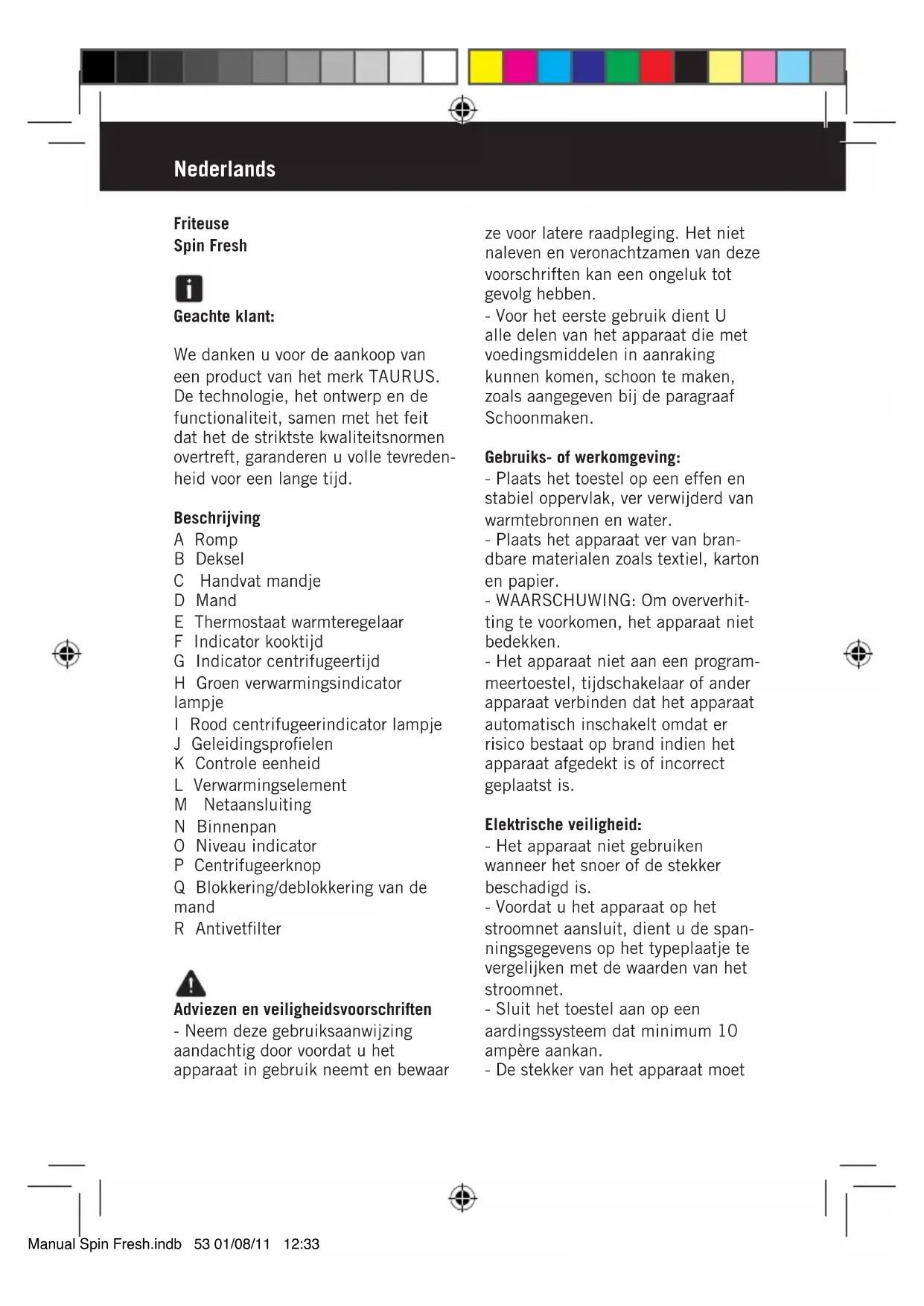GEBRUIKSAANWIJZING Spin Fresh TAURUS