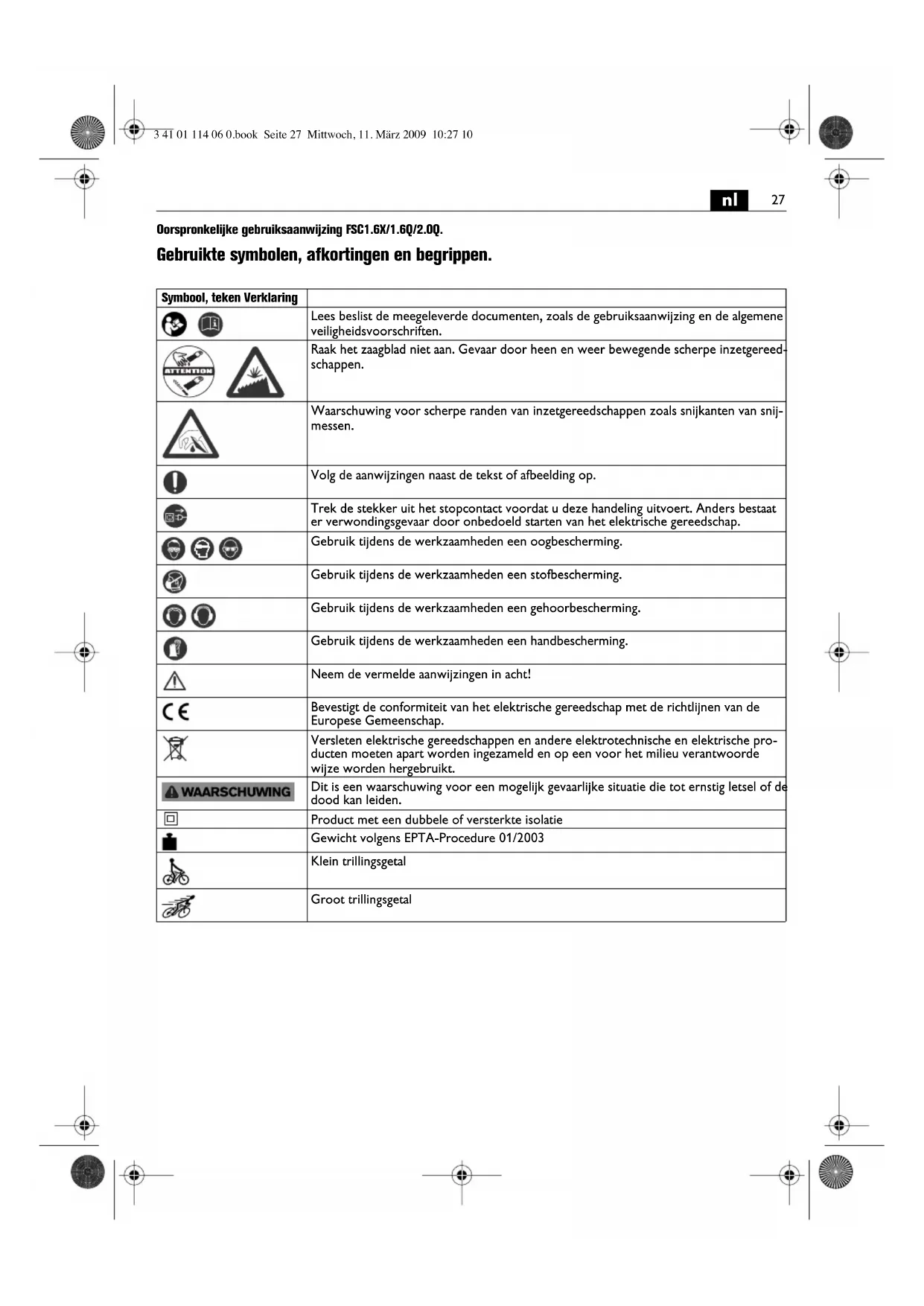 Gebruik dit elektrische gereedschap Niet voordat u deze gebruiksanawijzing en de meegeleverde „Algemene verilgheidsvoorschriften" (document-number 341 30 054 06 1) grondig heeft gelezen en volledig heeft begrepen. Bewaar deze documentatie voor later gebruik en geef ze mee wanner u het elektrische gereedschap doorgeeft of verkoopt.