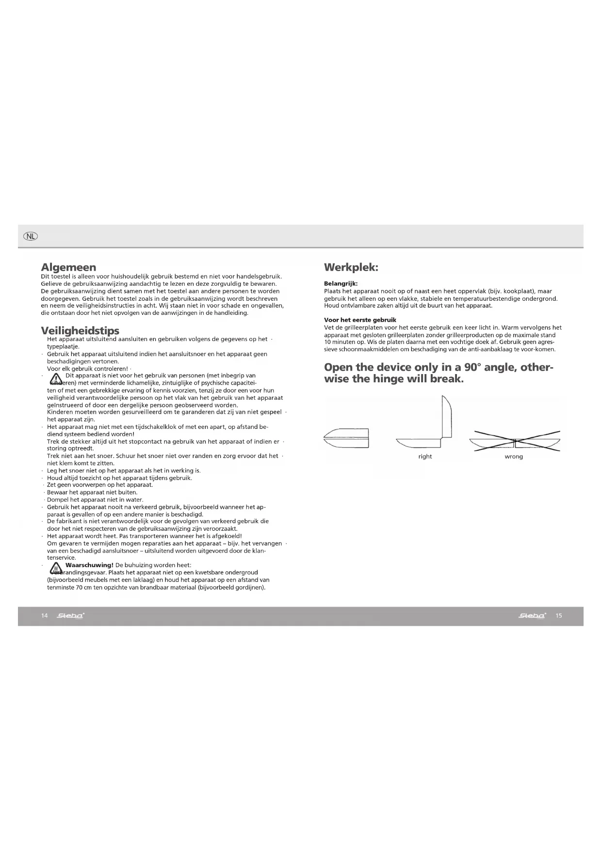 Let op: Tijdens het grilleren van toast- en grilleerproducten kan er condens vrijkomen. Verbrandingsgevaar!