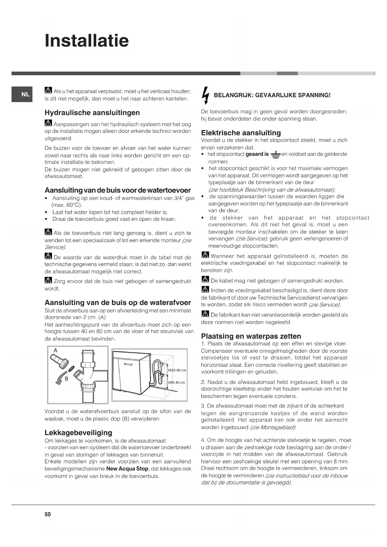 AFWASAUTOMAAT - Inhoud Gebruiksaanwijzingen, 1Belangrijke Veiligheidsinstructies, 7-8-9Service, 13 Productkaart, 15Installatie, 50-51Beschrijving van het apparaat, 52Onthardingszout en glansmiddel, 53Het laden van de rekken, 54-55Vaatwasmiddel en gebruik van de afwasautomaat, 56Programma’s, 57Speciale programma's en opties, 58Onderhoud en verzorging, 59Storingen en oplossingen, 602