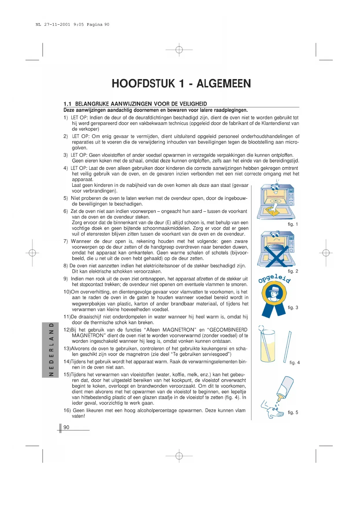 1.1 Belangrijke aanwijzingen voor de verilgheid ....pag. 90