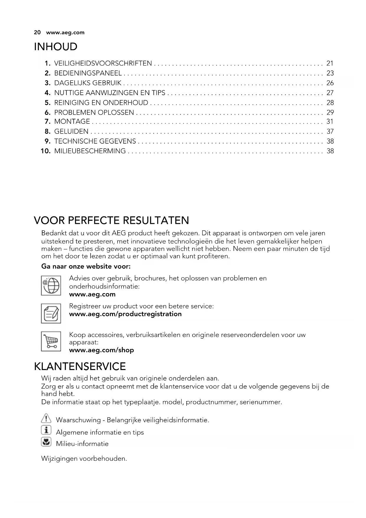 VOOR PERFECTE RESULTATEN Bedankt dat u voor dit AEG product heeft gekozen. Dit apparaat is ontworpen om vele jaren