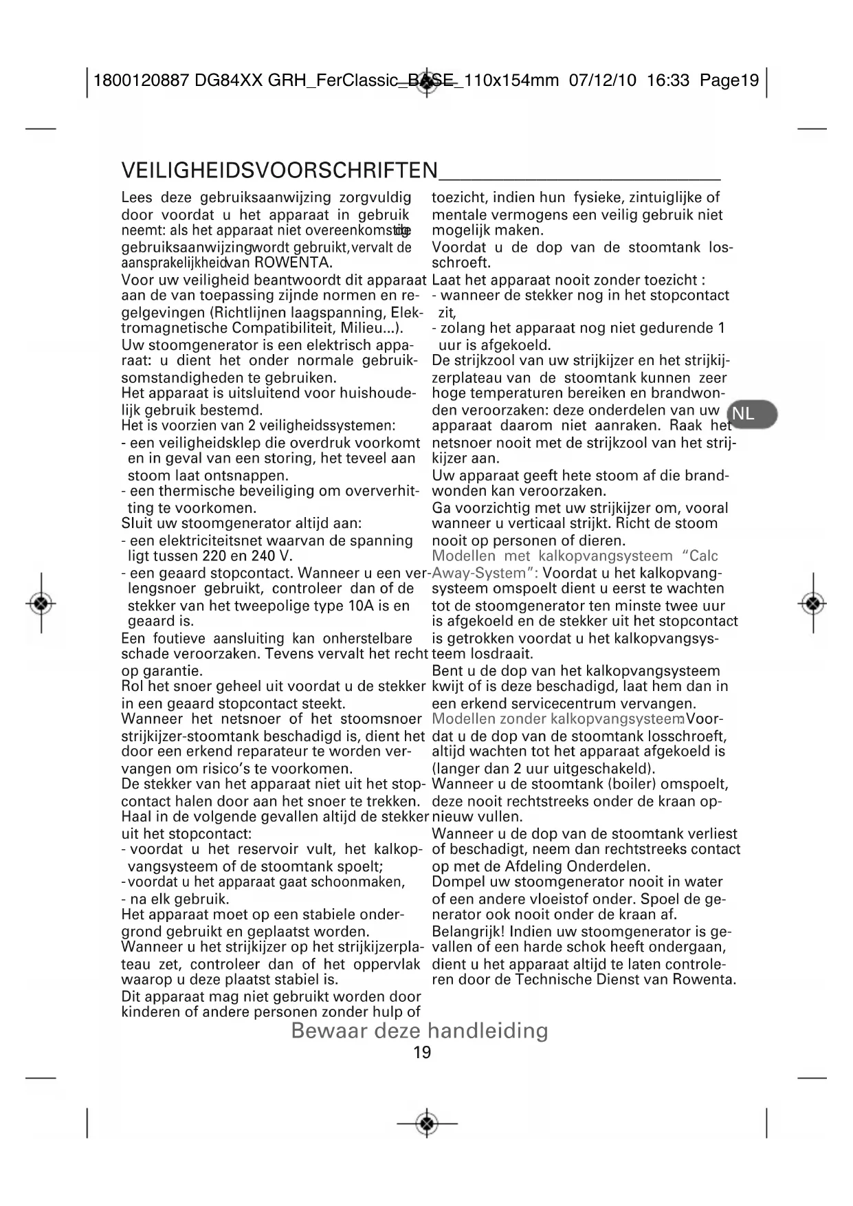 1800120887 DG84XX GRH_FerClassic_BASE_110x154mm 07/12/10 16:33 Page18VEILIGHEIDSVOORSCHRIFTEN__________________________