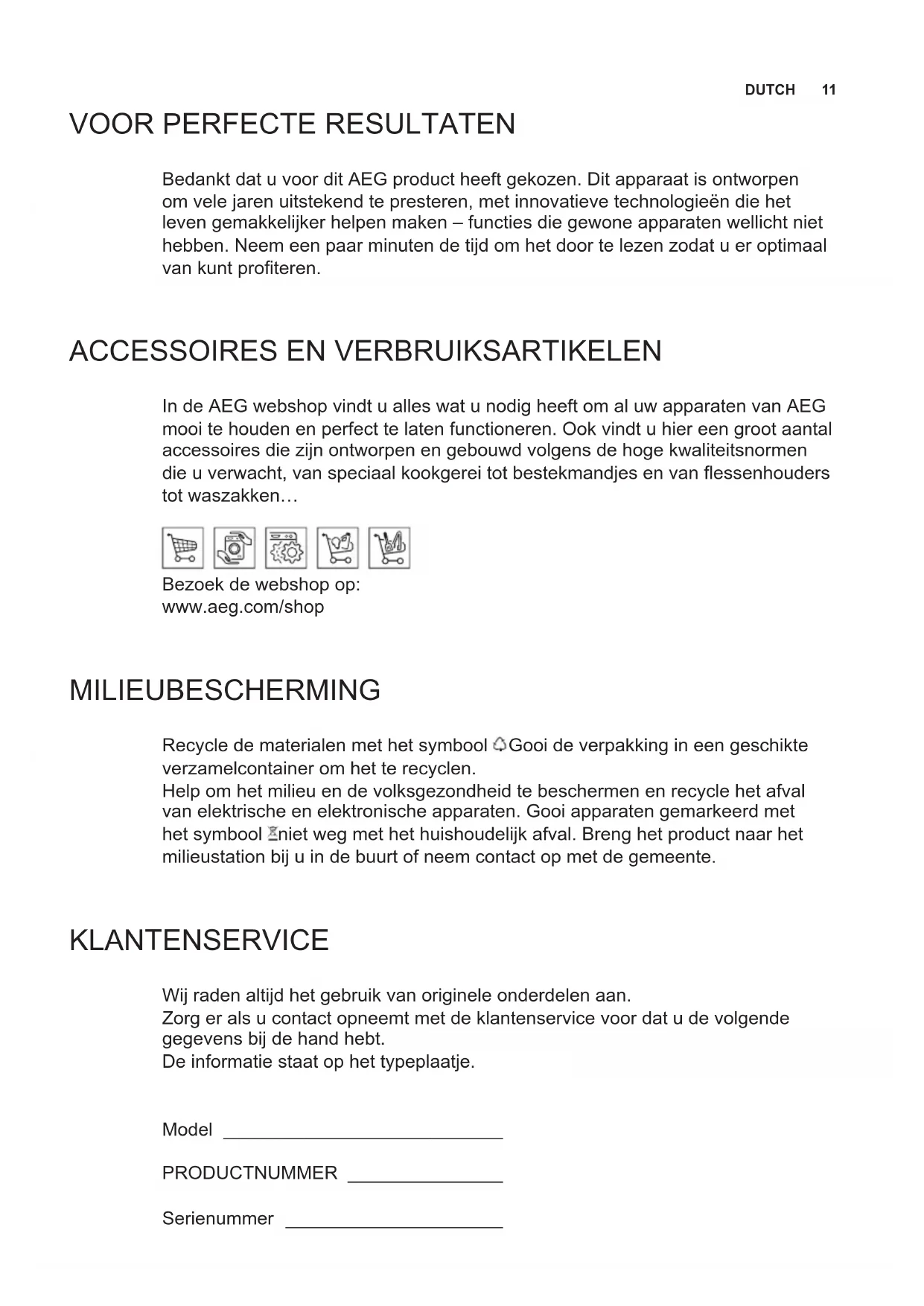 ACCESSOIRES EN VERBRUIKSARTIKELEN In de AEG webshop vindt u alles wat u nodig heeft om al uw apparaten van AEG