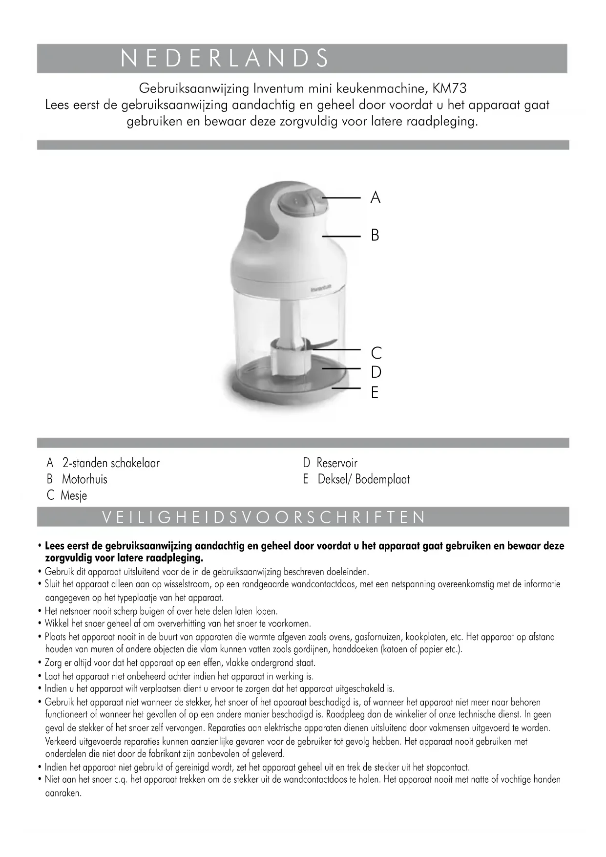 Gebruiksaanwijzing Inventum mini keukenmachine, KM73