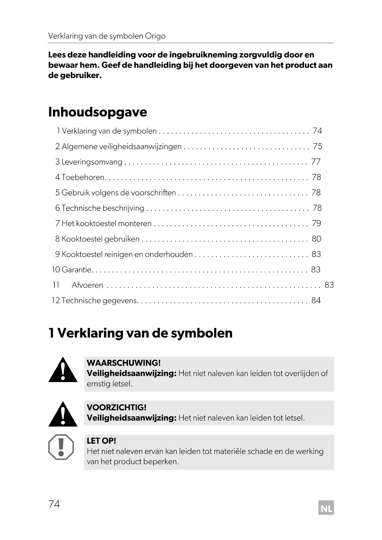 Origo-A100-A200--O-16s.book Seite 74 Freitag, 18. Mai 2018 10:40 10NL Origo Algemene veiligheidsaanwijzingen