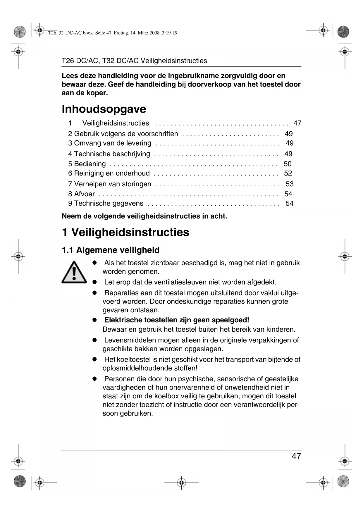 T26_32_DC-AC.book Seite 47 Freitag, 14. März 2008 3:19 15Veiligheidsinstructies T26 DC/AC, T32 DC/AC