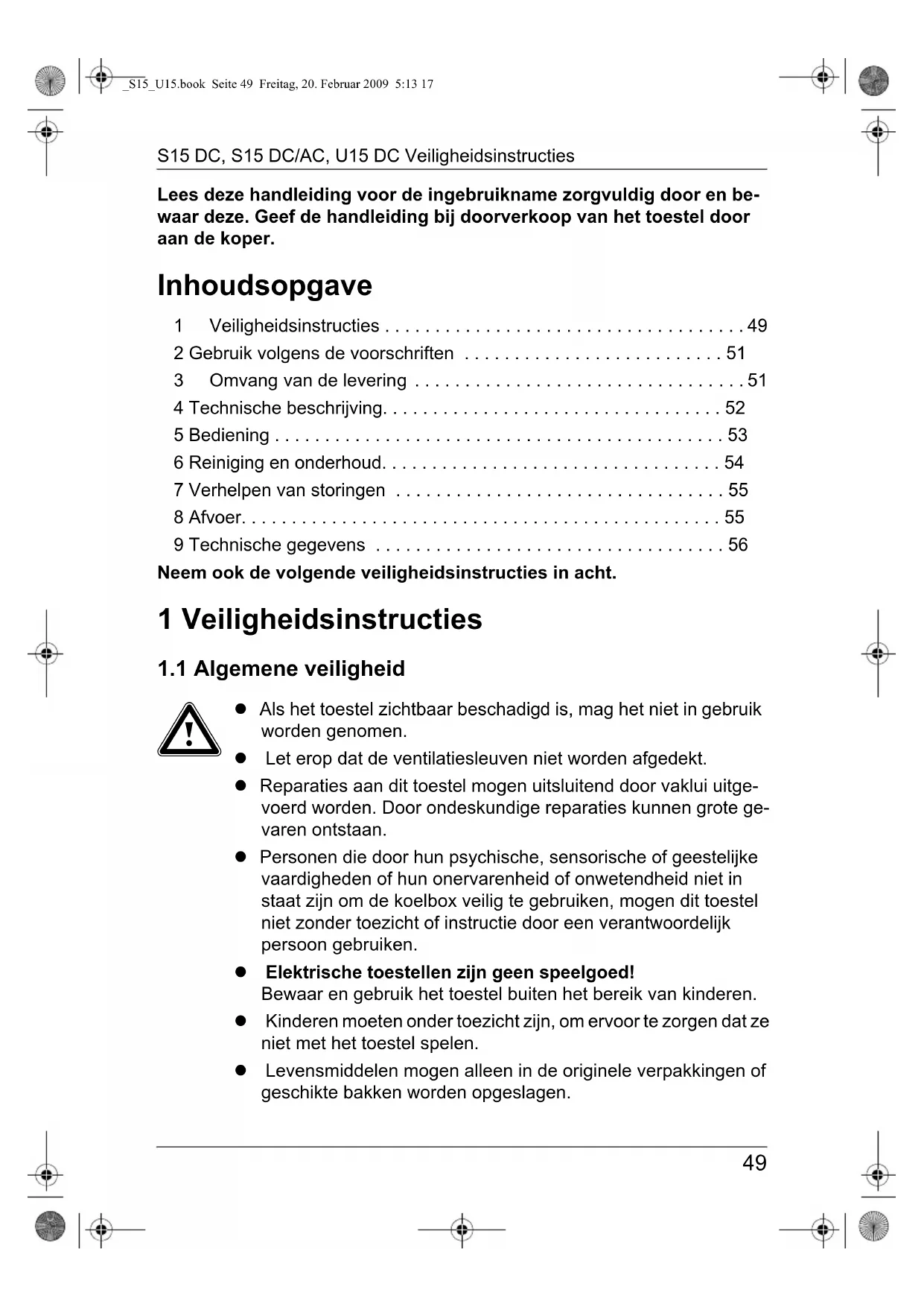 _S15_U15.book Seite 49 Freitag, 20. Februar 2009 5:13 17Veiligheidsinstructies S15 DC, S15 DC/AC, U15 DC