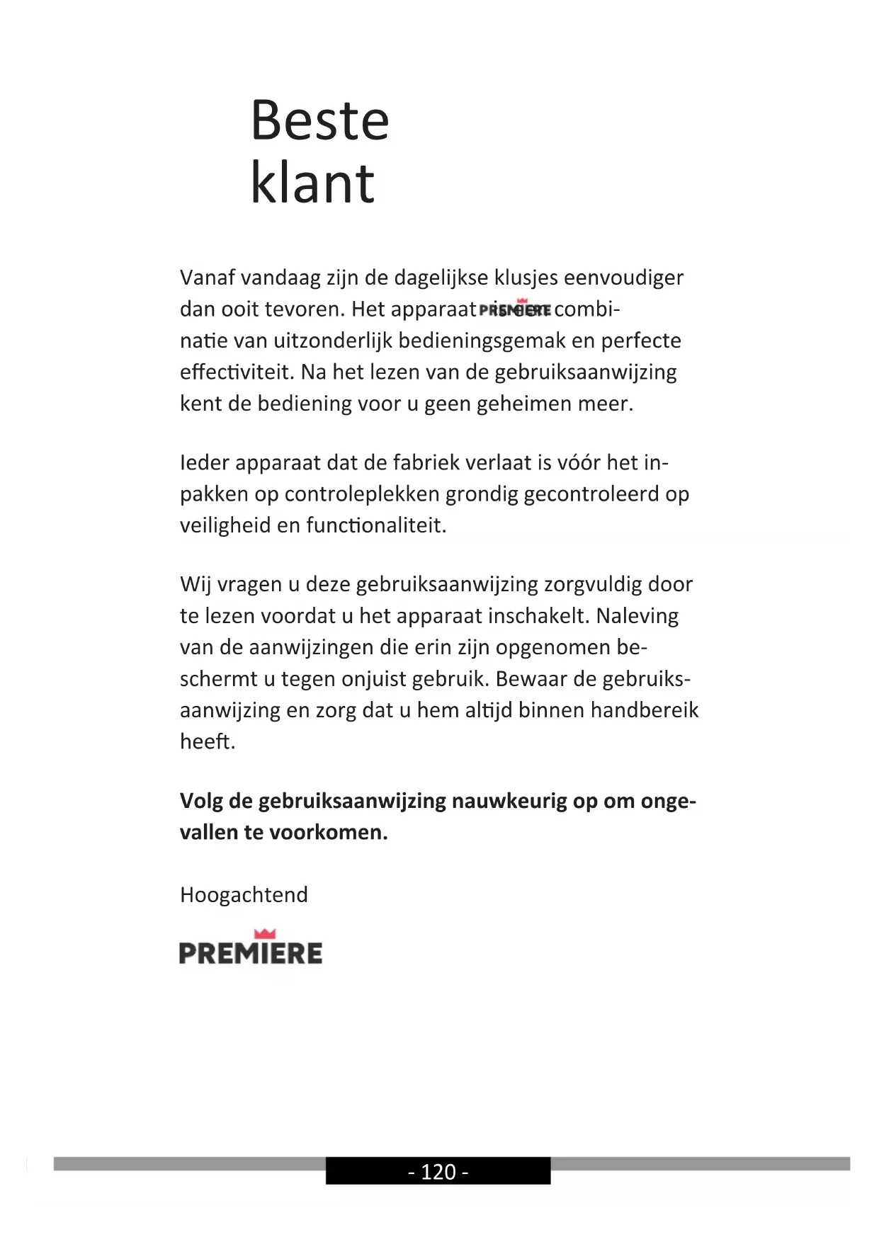 Wij vragen u deze gebruiksaanwijzing zorgvuldig door