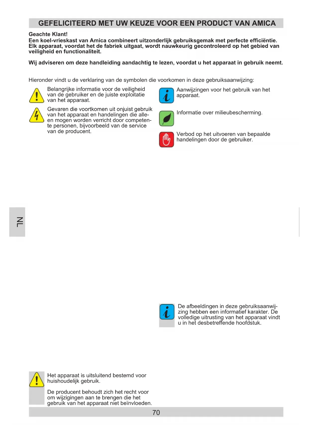 GEfELICITEERD MET UW KEUZE VOOR EEn pRODUCT VAn AMICA Hieronder vindt u de verklaring van de symbolen die voorkomen in deze gebruiksaanwijzing: