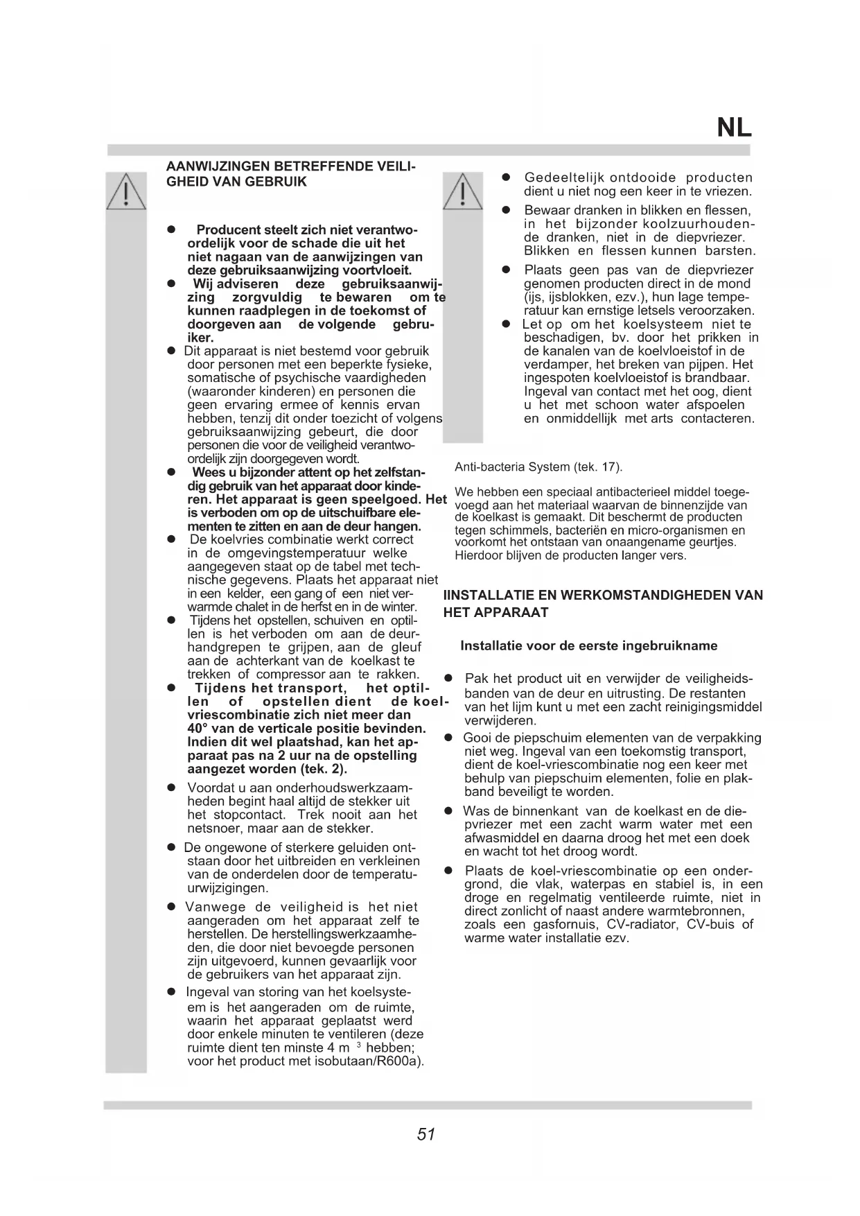 GHEID VAN GEBRUIK IINSTALLATIE EN WERKOMSTANDIGHEDEN VAN HET APPARAAT