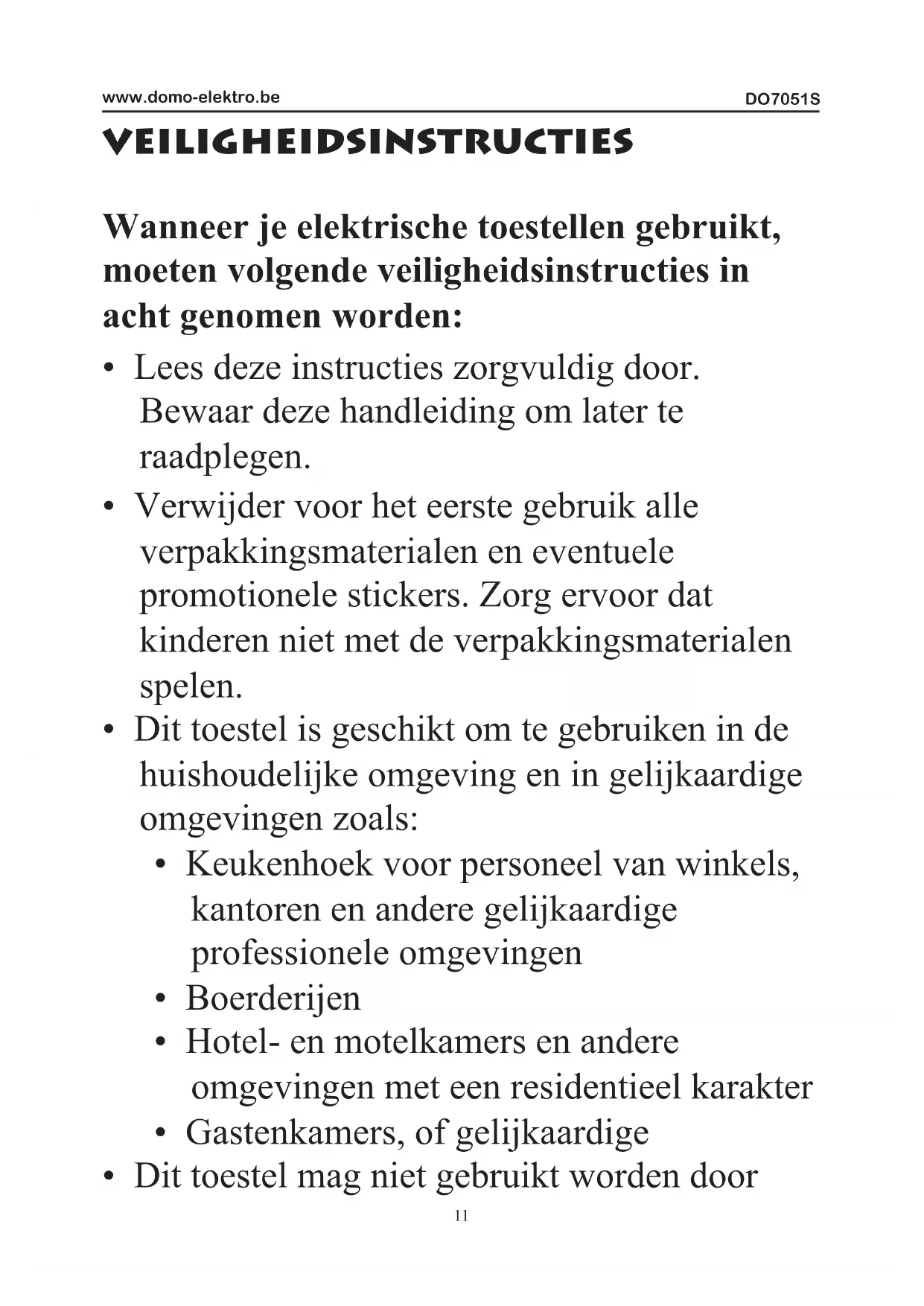 www.domo-elektro.be veiligheidsinstructies Wanneer je elektrische toestellen gebruikt, moeten volgende veiligheidsinstructies in acht genomen worden: