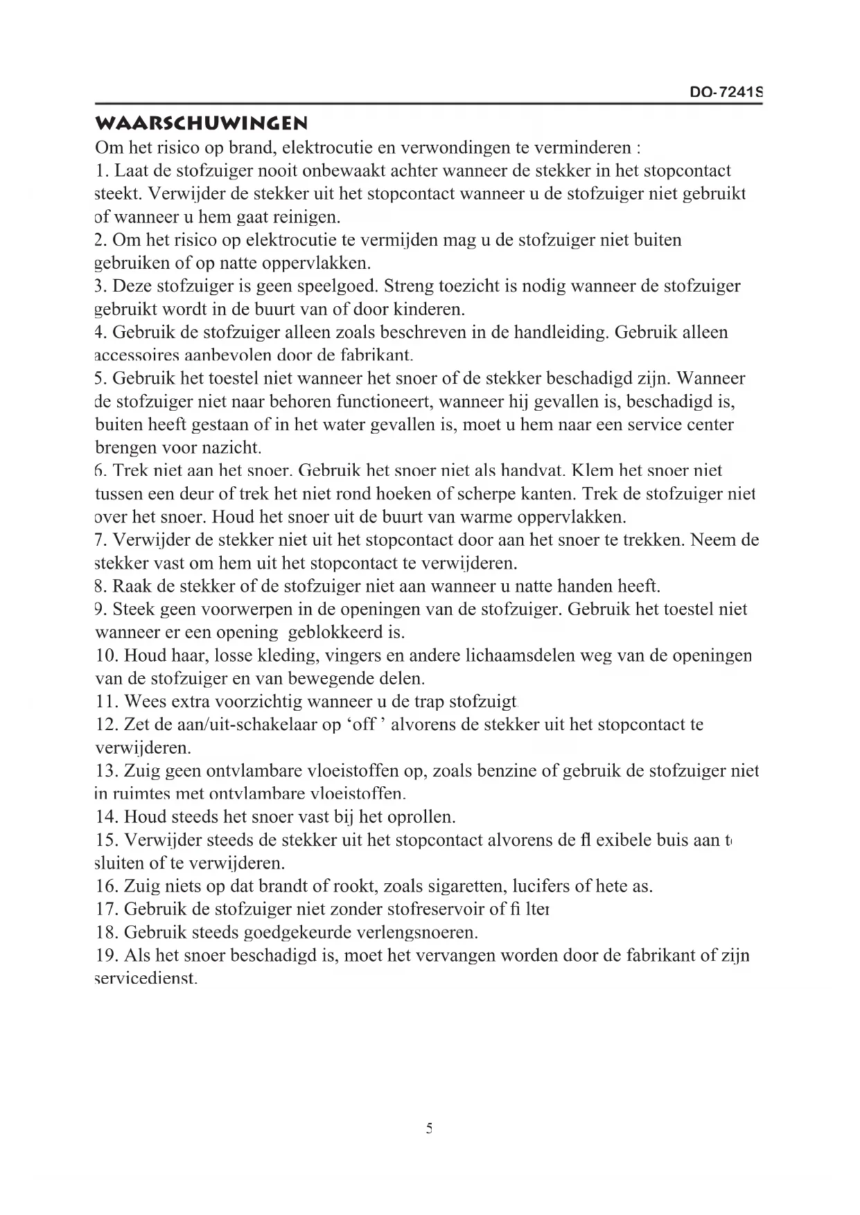 HANDLEIDING MODE D’EMPLOI GEBRAUCHANLEITUNG INSTRUCTION BOOKLET PRODUCT OF STOFZ UIGER ASPIRAT EUR STAUBSAUGER VACUUM CLEANER DO-7241SDO-7241S GARANTIEVOORWAARDEN Dit apparaat heeft een garantietermijn van 2 jaar vanaf de datum van aankoop.