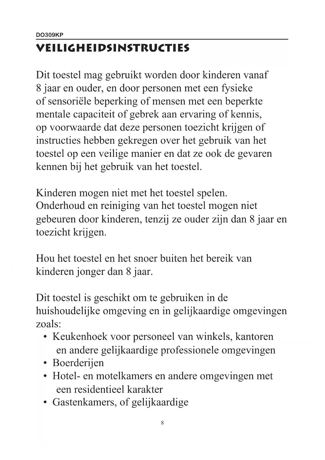 GEBRUIKSAANWIJZING DO309KP DOMO
