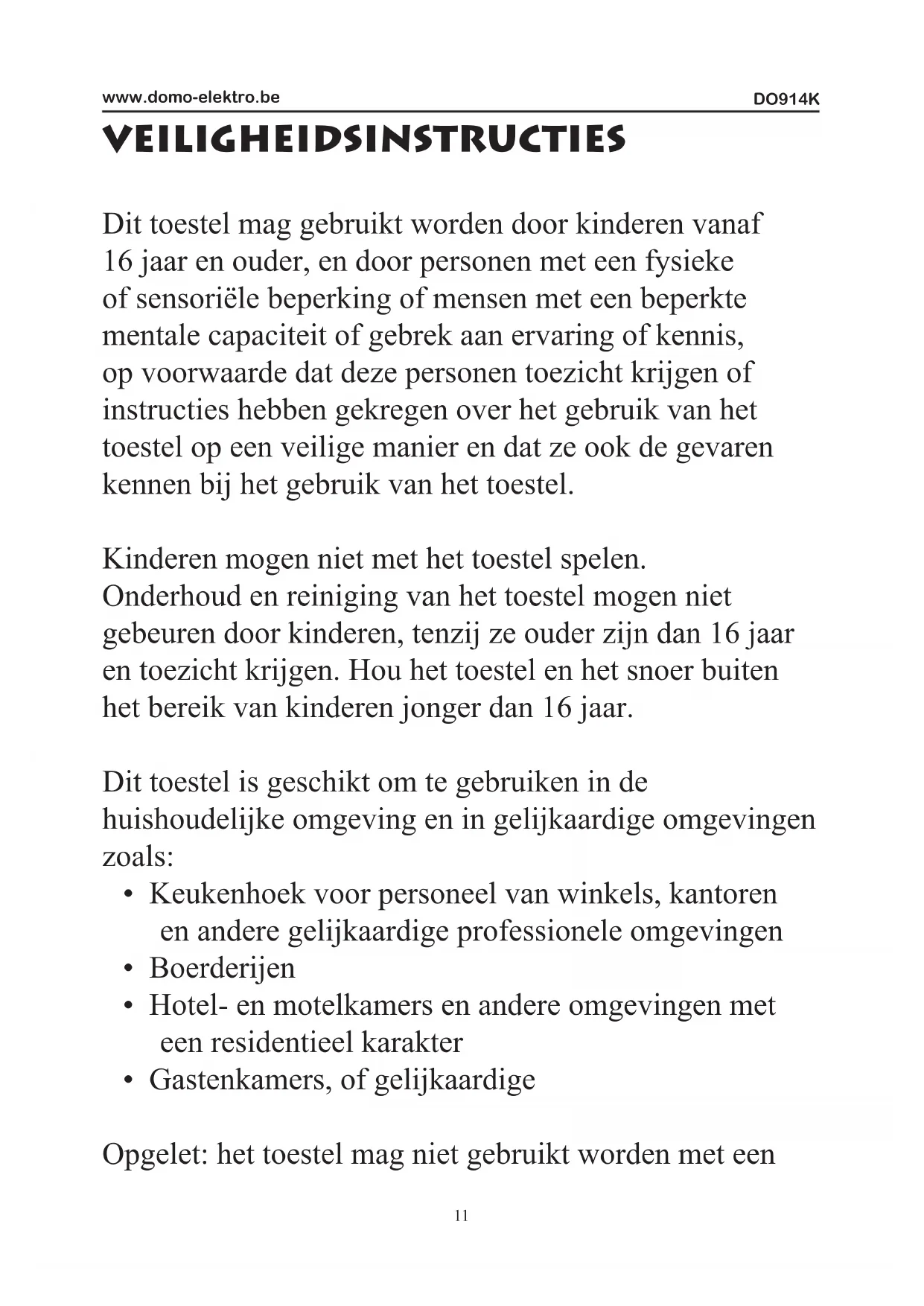 GEBRUIKSAANWIJZING DO914K DOMO