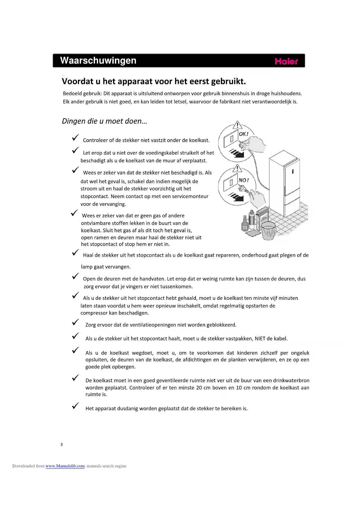 Gebruikgeenhaardrogerindekoelkast.Plaatsgeenbrandendekaarsenindekoelkastomnare