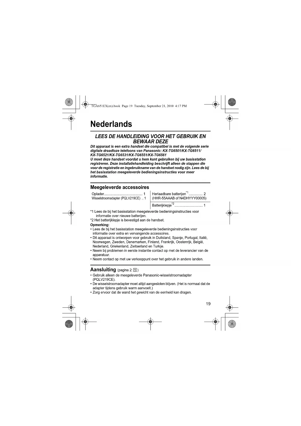 KX-TG6521/KX-TG6531/KX-TG6561 is geregistreerd.