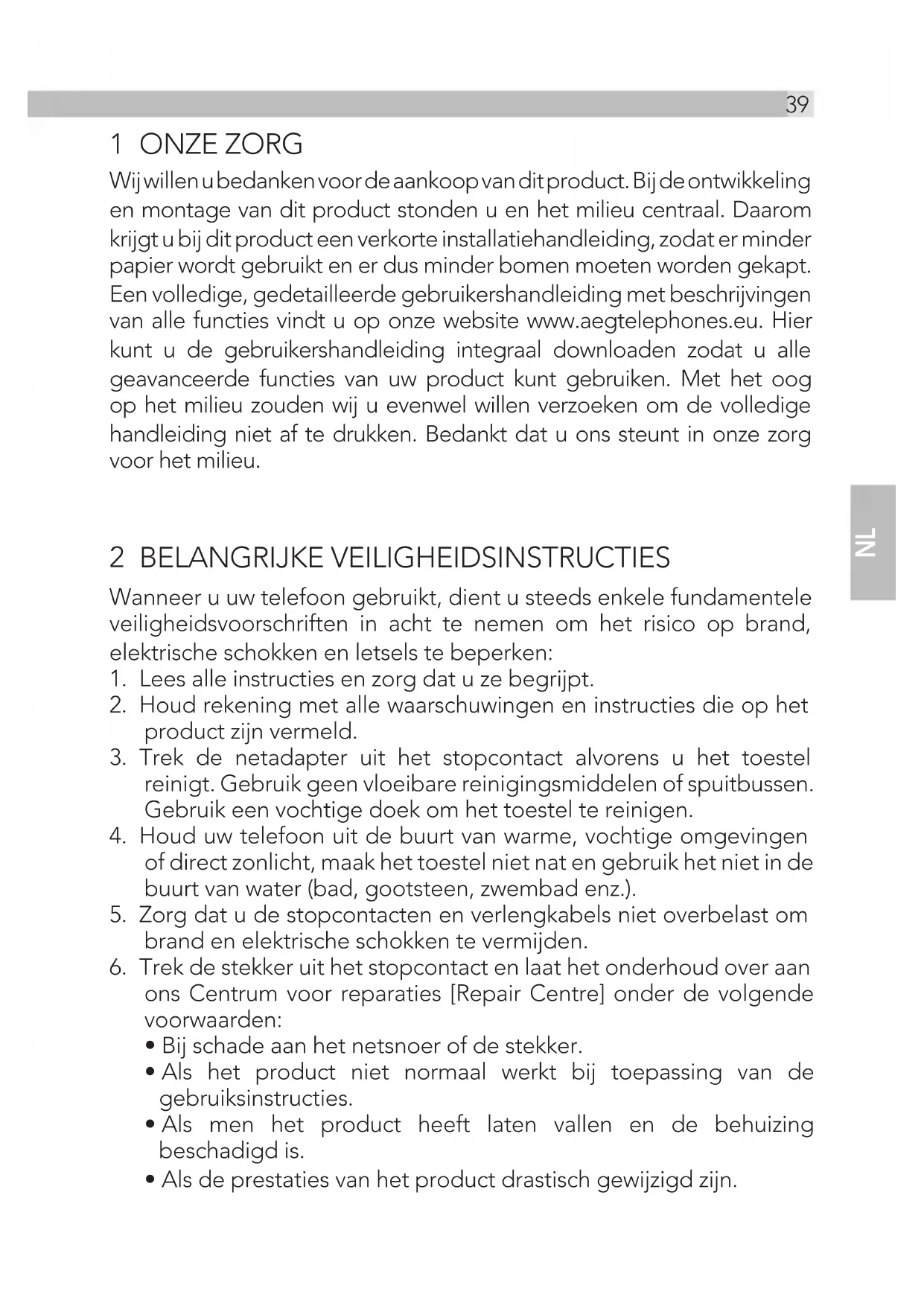 van alle functies vindt u op onze website www.aegtelephones.eu. Hier