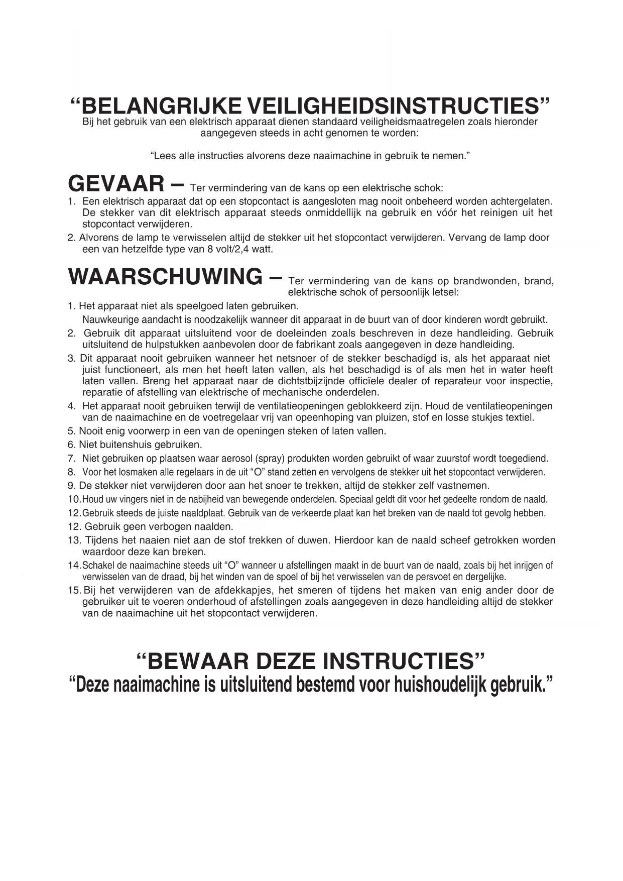 “Lees alle instructies alvorens deze naaimachine in gebruik te nemen.”