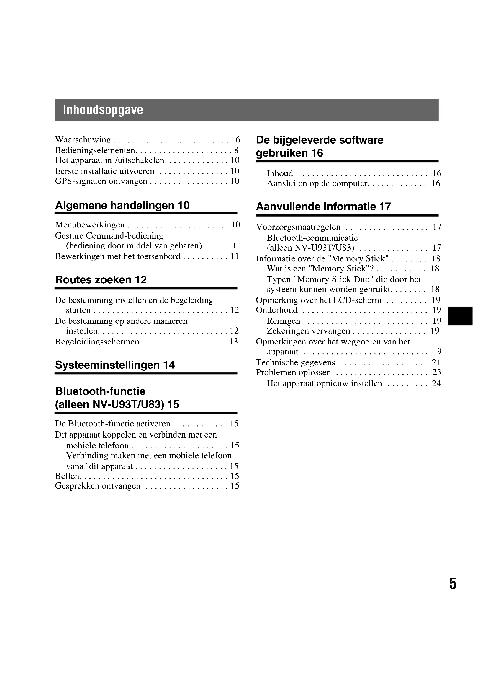 Download de handleiding voor uw GPS in PDF-formaat gratis! Vind uw handleiding NVU93 - SONY en neem uw elektronisch apparaat weer in handen. Op deze pagina staan alle documenten die nodig zijn voor het gebruik van uw apparaat. NVU93 van het merk SONY.