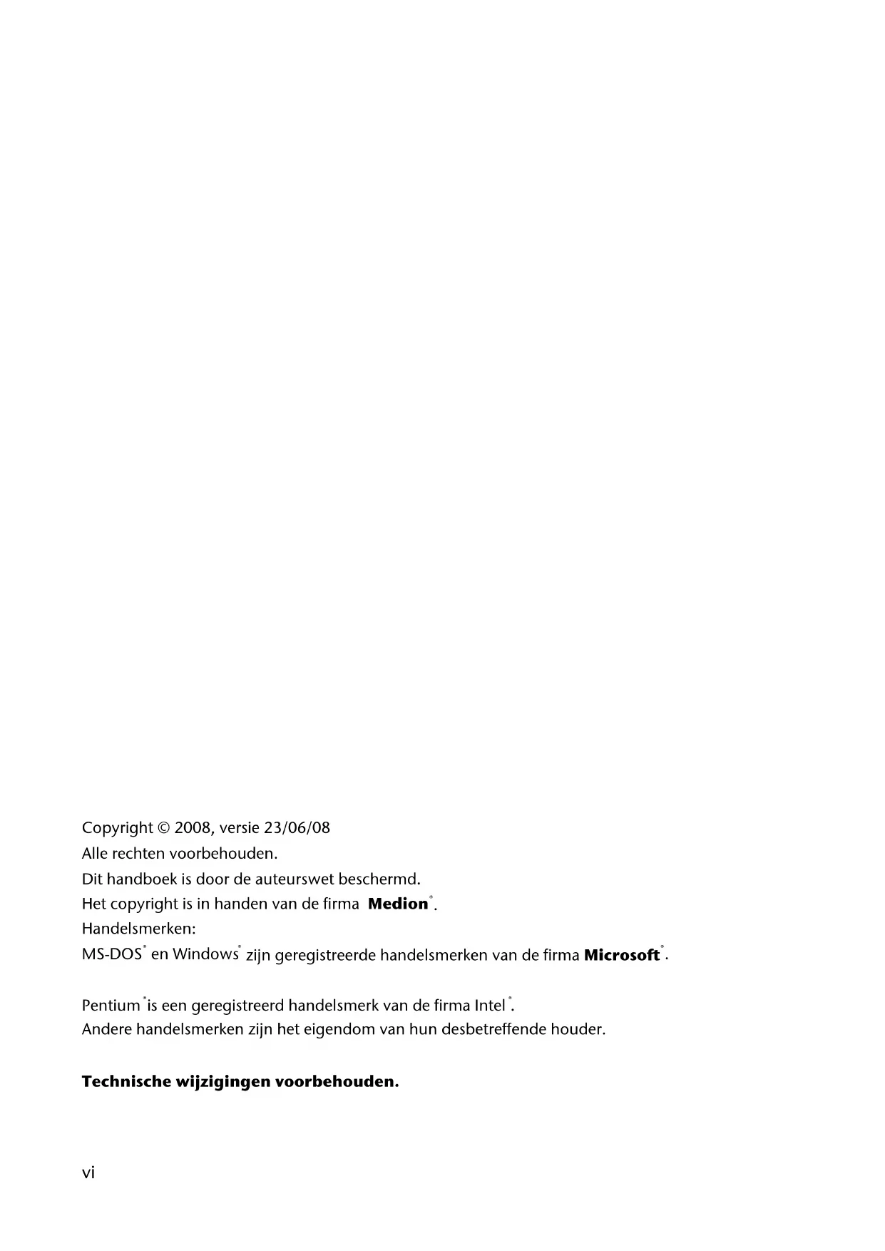 Copyright © 2008, versie 23/06/08 Alle rechten voorbehouden. Dit handboek is door de auteurswet beschermd. Het copyright is in handen van de firma Medion