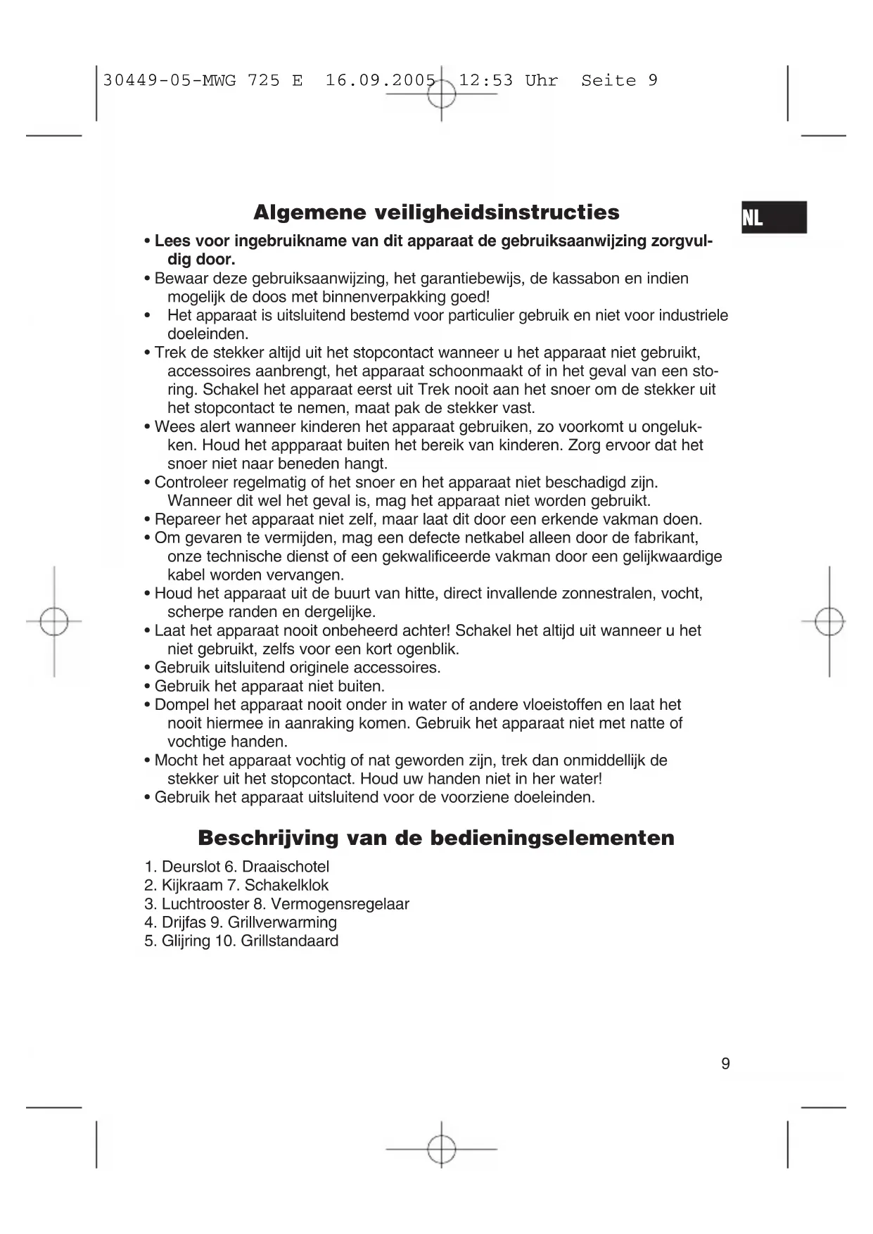 30449-05-MWG 725 E 16.09.2005 12:53 Uhr Seite 9Speciale veiligheidsinstructies voor dit apparaat