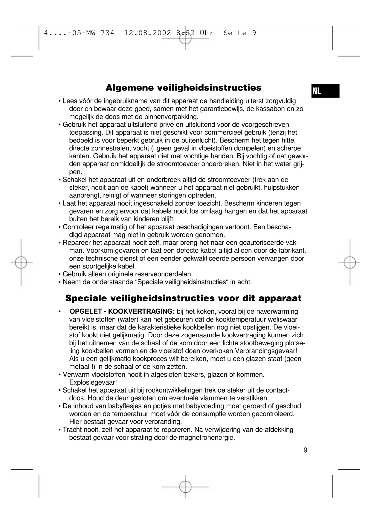 GEBRUIKSAANWIJZING MW 734 CLATRONIC