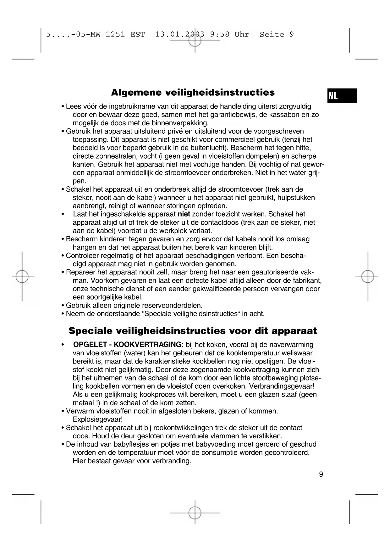 - 100% 700 W 5....-05-MW 1251 EST 13.01.2003 9:59 Uhr Seite 11Reiniging Onderbeek de stroomtoevoer.