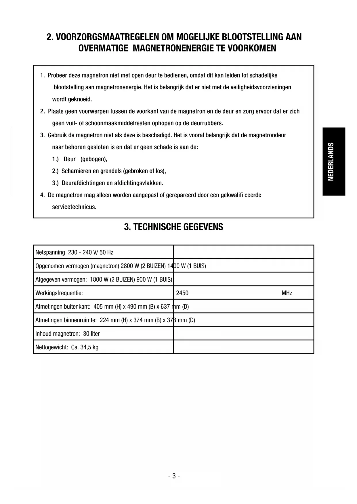 3.) Deurafdichtingen en afdichtingsvlakken. - De magnetron mag alleen worden aangepast of gerepareerd door een gekwalifi ceerde servicetechnicus.
