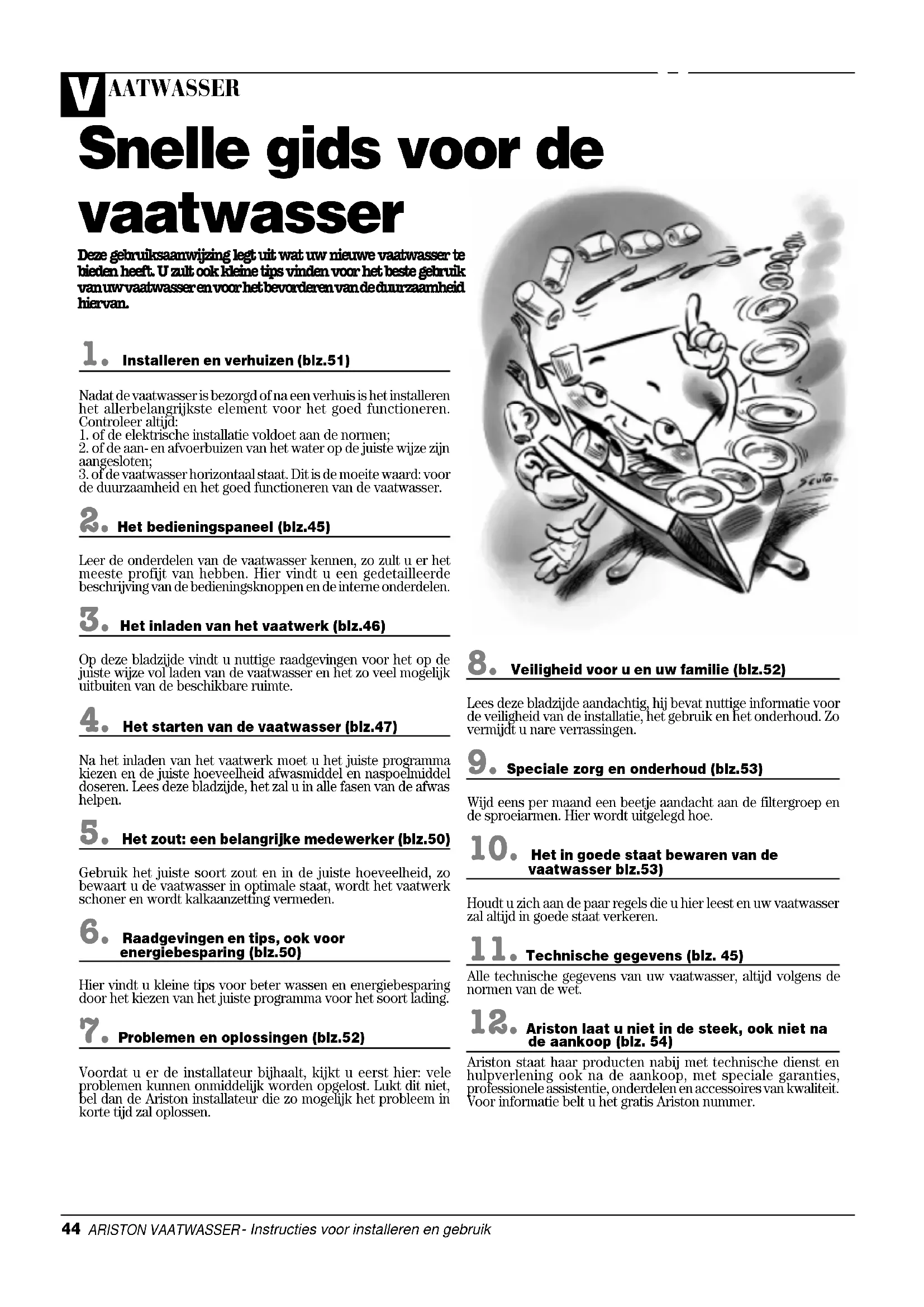 ARISTON VAATWASSER - Instructies voor installeren en gebruik Snelle gids voor de vaatwasser