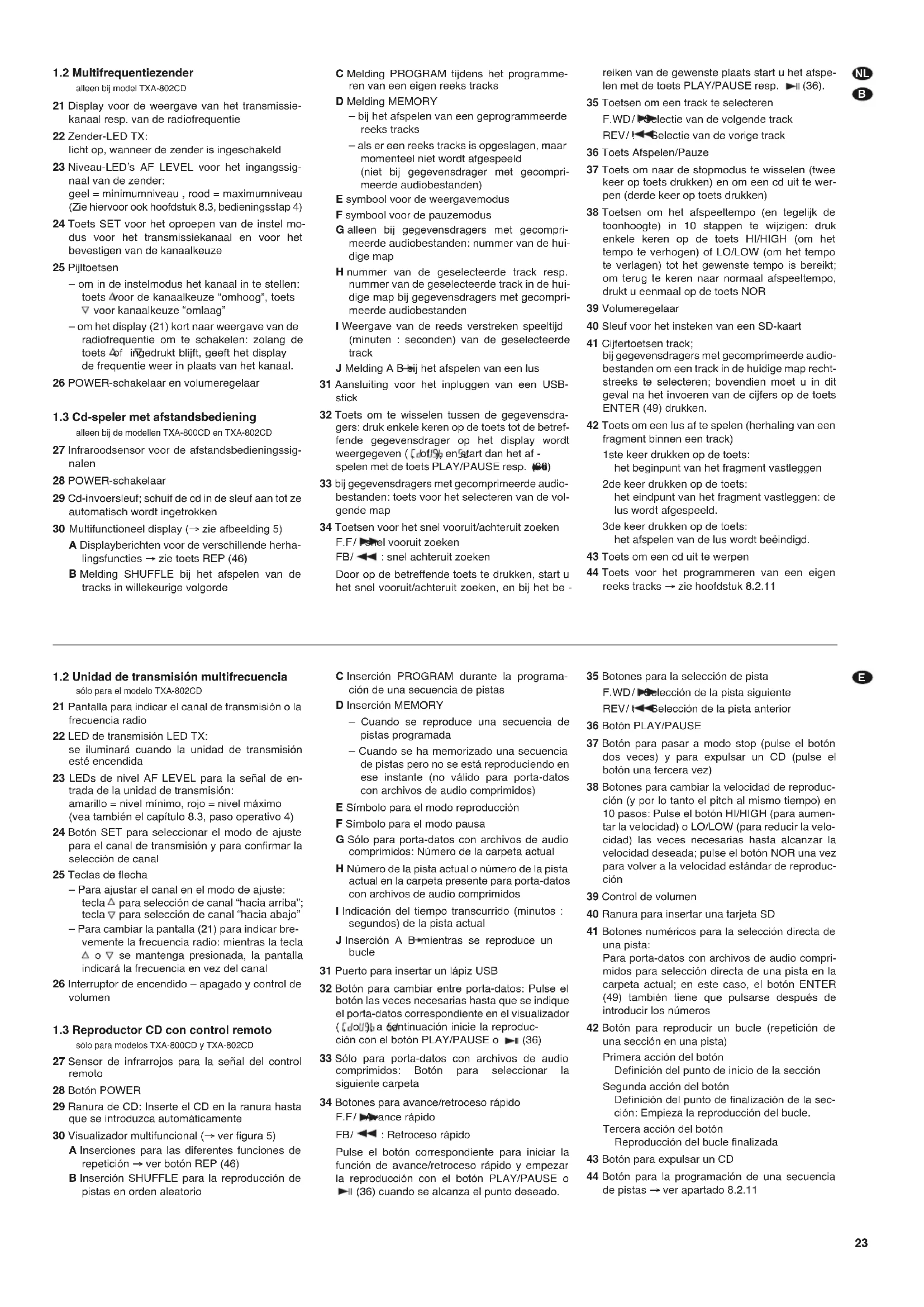 1.3 Cd-speler met afstandsbediening alleen bij de modellen TXA-800CD en TXA-802
