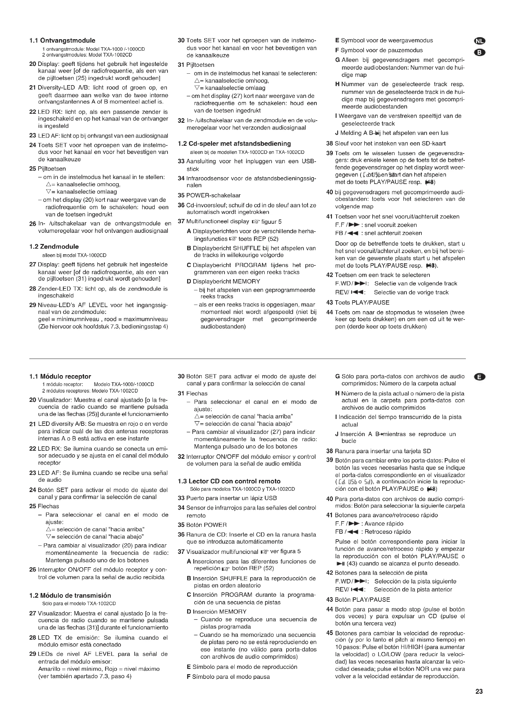 alleen bij de modellen TXA-1000CD en TXA-1002CD