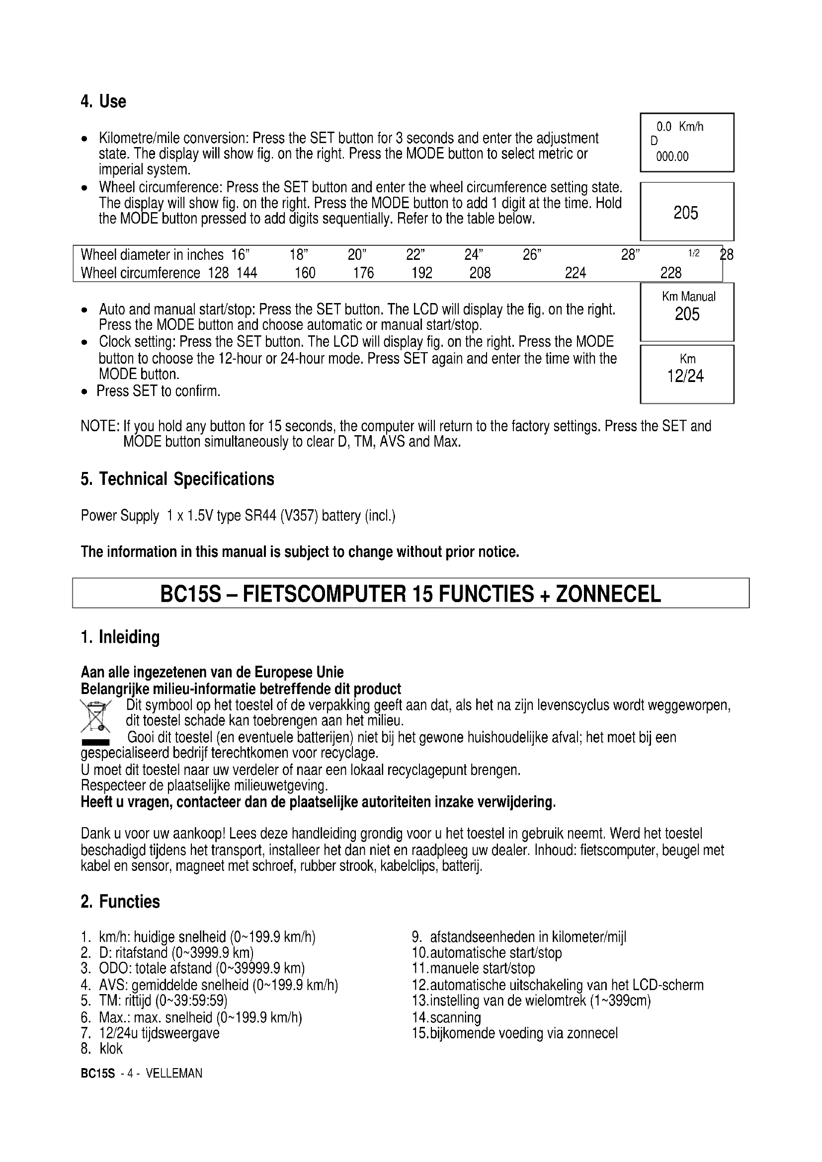 Vind de handleiding van het apparaat gratis BC15S VELLEMAN in PDF-formaat.