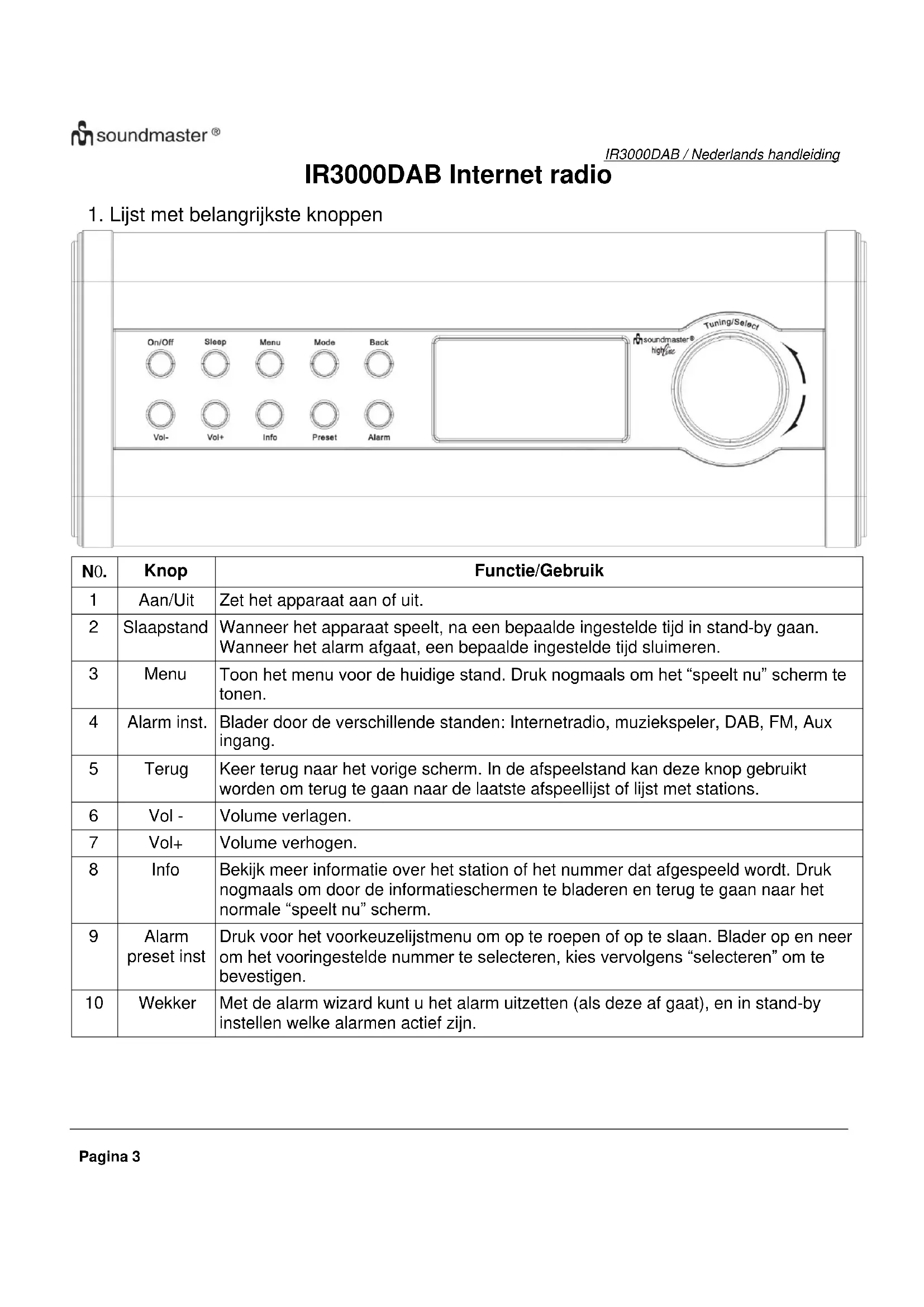 GEBRUIKSAANWIJZING IR3000DAB Soundmaster