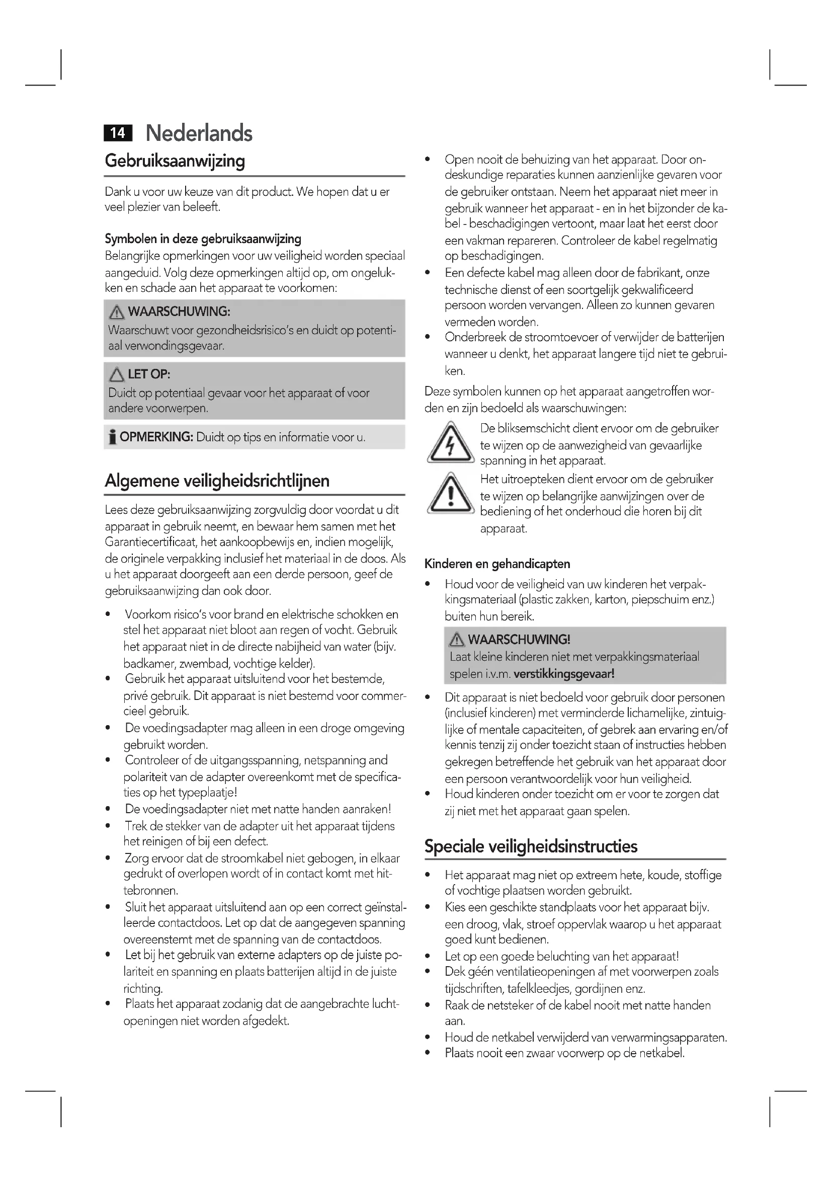- Houdkinderenondertoezichtomervoortezorgendat zij niet met het apparaat gaan spelen. Speciale veiligheidsinstructies
