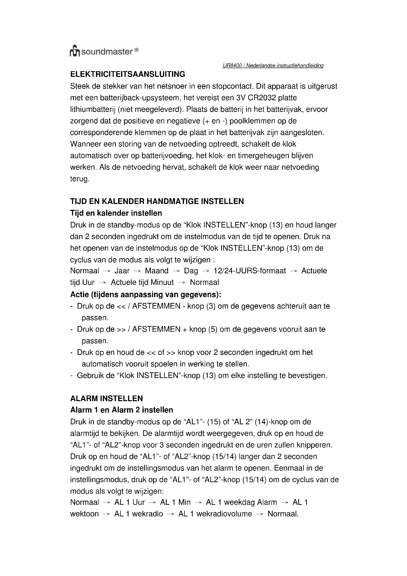 GEBRUIKSAANWIJZING UR8400 Soundmaster