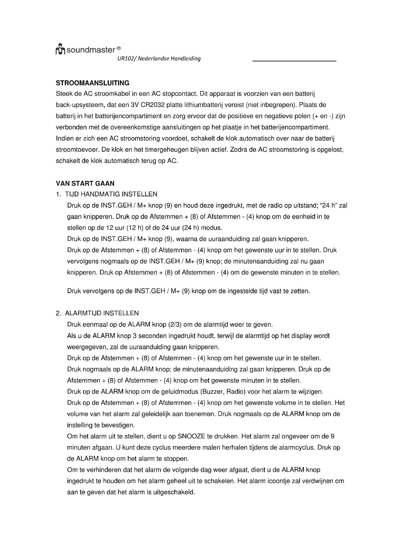 GEBRUIKSAANWIJZING UR102 Soundmaster