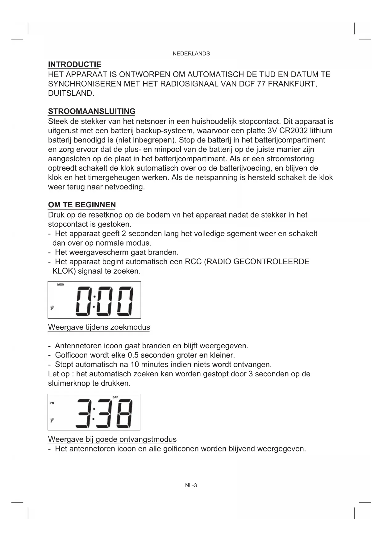 - Het apparatus began automatics en RCC (RADIO GECONTROLEERDE KLOK) signal to zoeken.